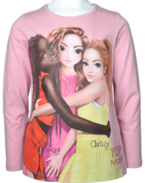 Pretty long-sleeved t-shirt in navy from TOPModel with the models Malia, Lexy and Christy on the front. In addition, the shirt is adorned with a glittering TOPModel print. The pleasant material offers a high wearing comfort.