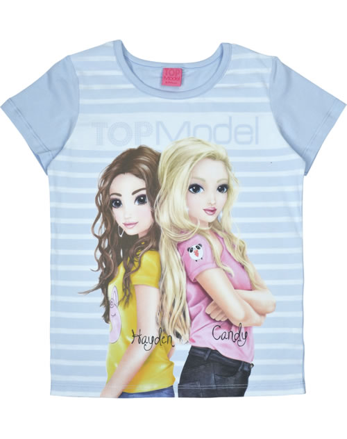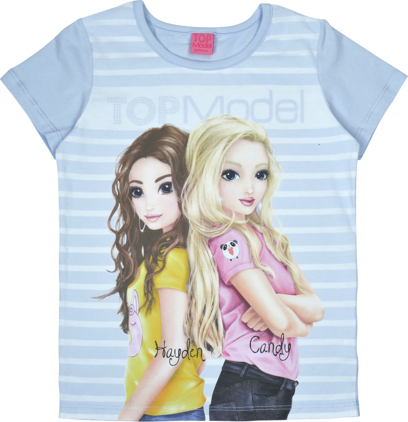 Pretty short-sleeved T-shirt in lightblue from TOPModel with the model Candy & Hayden on the front. In addition, the shirt is adorned with a glittering TOPModel print. The pleasant material offers a high level of comfort.