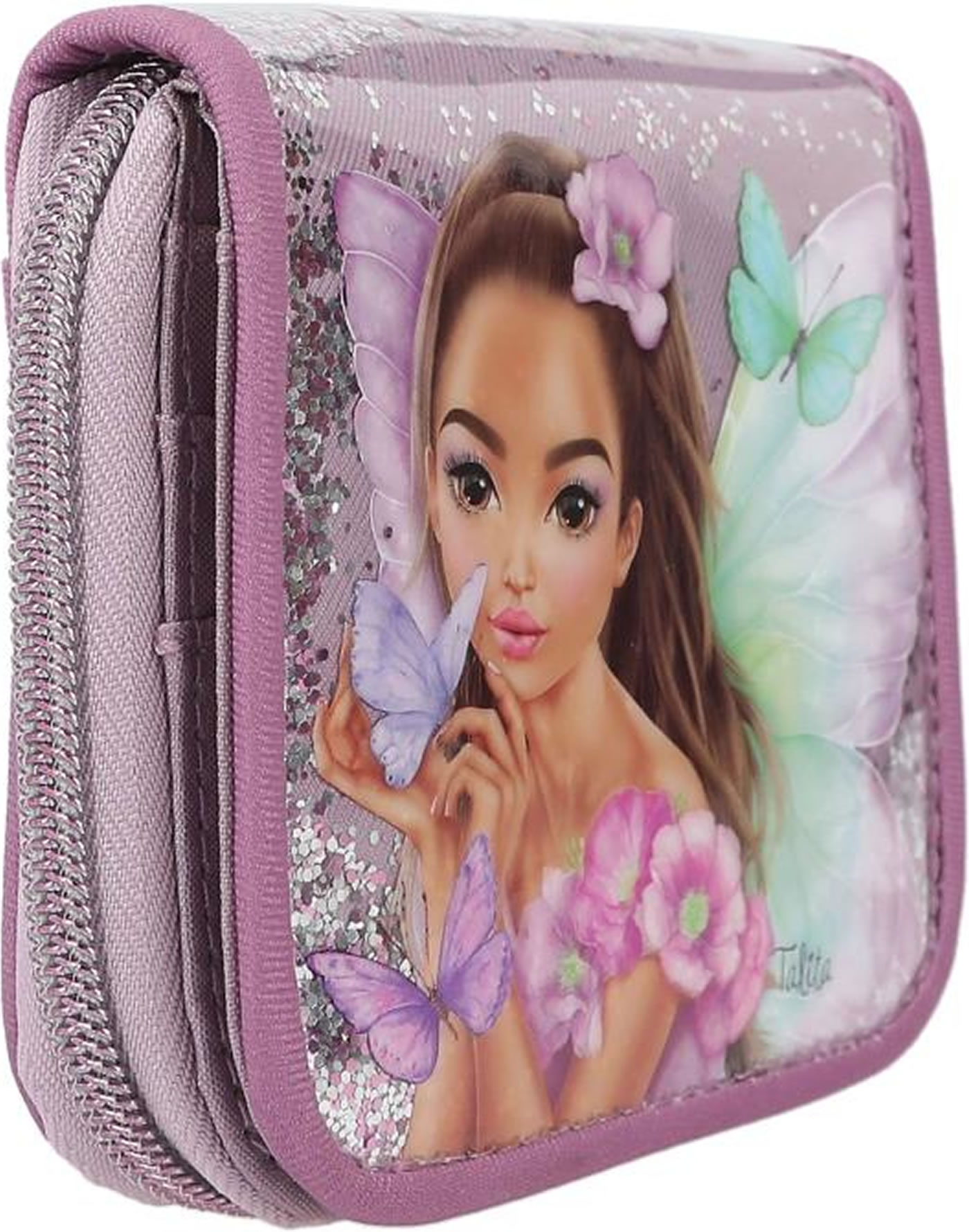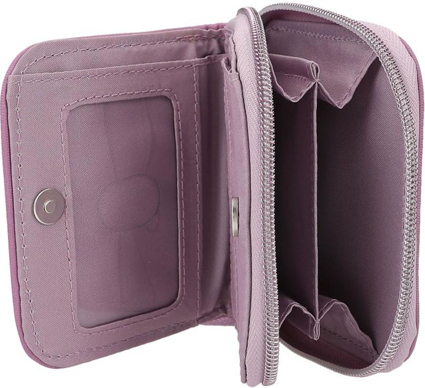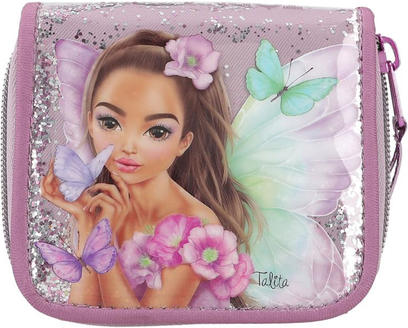Fairy-fantastic! The mauve-colored TOPModel wallet has a front completely lined with glitter and an imaginative fairy model motif. Fluttering all around: delicate butterfly prints. With snap fastener and zipper as well as compartments for coins, notes and cards (including name card compartment with transparent window).