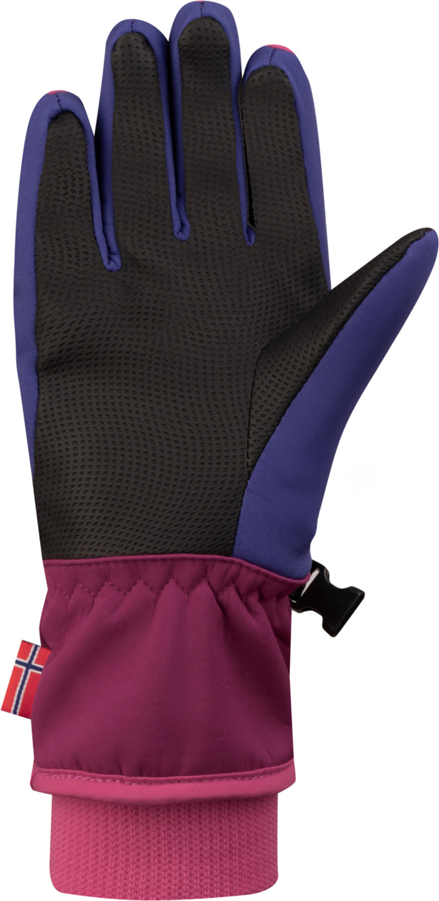 The KIDS TROLLTUNGA GLOVE by Trollkids is a water repellent glove made of windproof, highly elastic softshell material, made for the wildest snowball fights and the fastest slopes. Lined with soft fleece, it keeps you warm. The palms are rubberized for better grip. The pair can be attached to each other with a small connecting clip and thanks to a loop in the glove shaft that can be slipped over the wrist, they are not lost.
