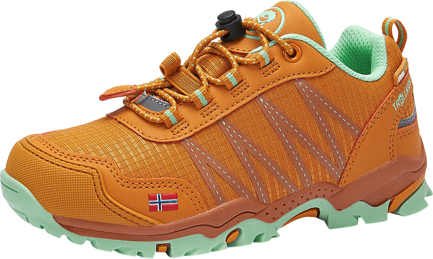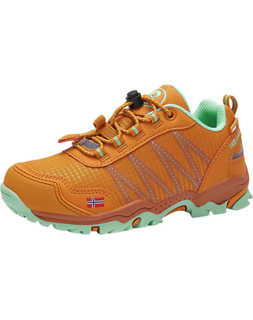 The KIDS TROLLTUNGA HIKER LOW by TROLLKIDS is a robust and waterproof hiking shoe with lacing that is in its element when playing, romping or hiking. Reinforcements in the heel and toe area ensure stability and protect the foot. The profiled sole provides the necessary grip and reflective elements for good visibility.