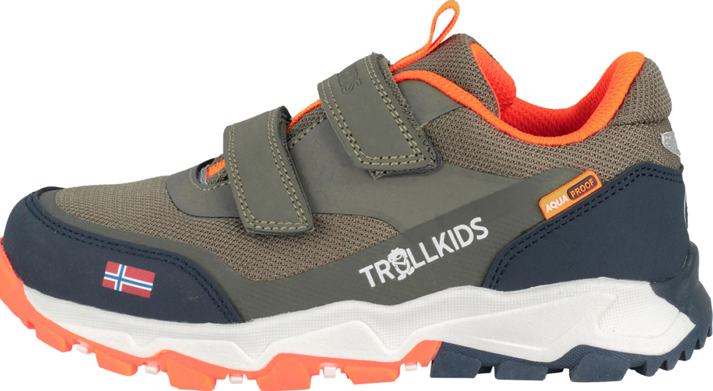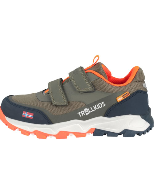 The KIDS PREIKESTOLEN HIKER by TROLLKIDS is a robust and waterproof hiking shoe with Velcro fasteners that is in its element when playing, romping or hiking. Reinforcements in the heel and toe area ensure stability and protect the foot. The breathable shoe is softly lined on the inside, so nothing can pinch or chafe. With removable insole.