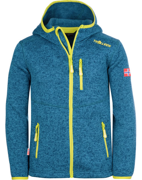 Trollkids Hooded jacket fleece KIDS JONDALEN XT petrol/lime