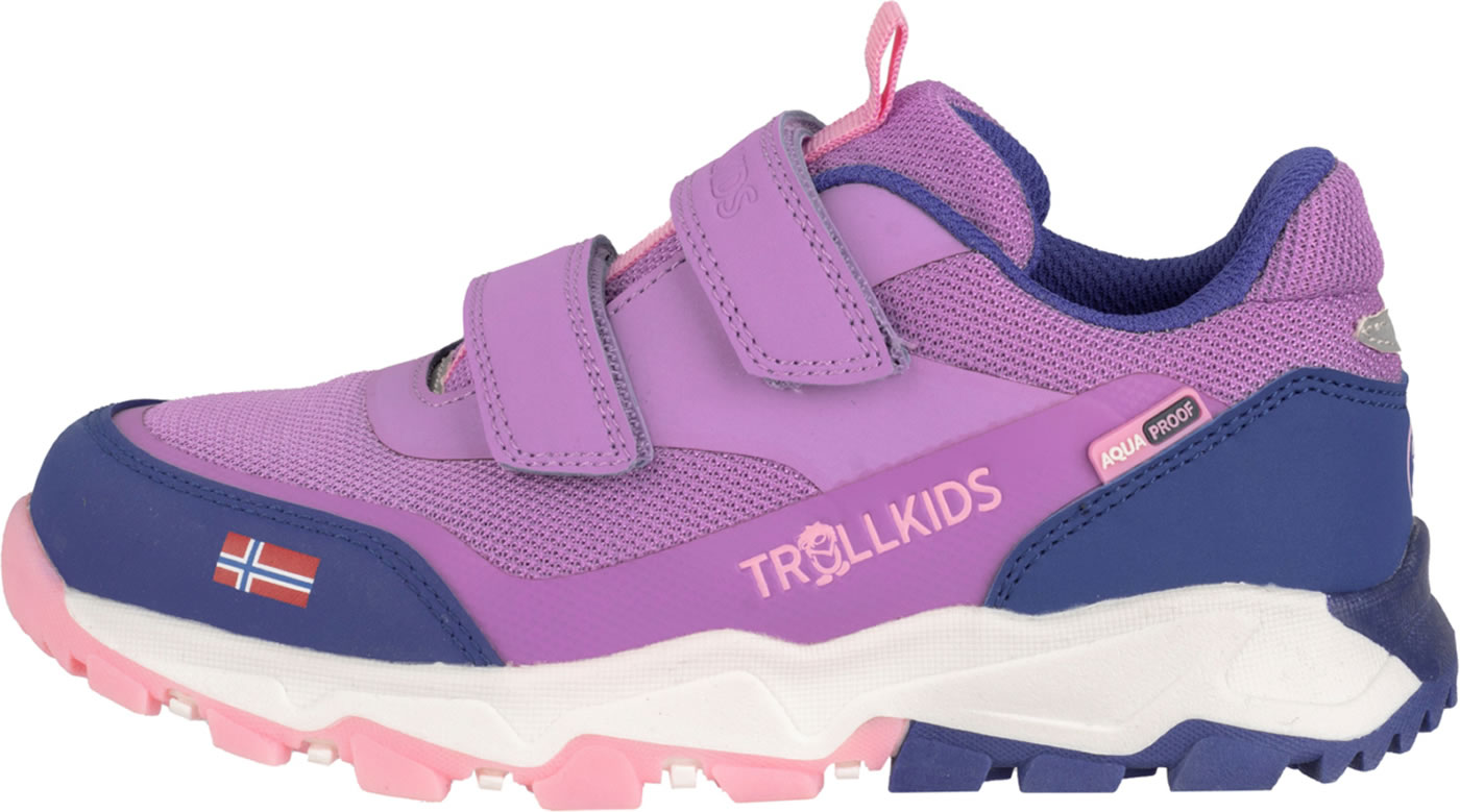 The KIDS PREIKESTOLEN HIKER by TROLLKIDS is a robust and waterproof hiking shoe with Velcro fasteners that is in its element when playing, romping or hiking. Reinforcements in the heel and toe area ensure stability and protect the foot. The breathable shoe is softly lined on the inside, so nothing can pinch or chafe. With removable insole.
