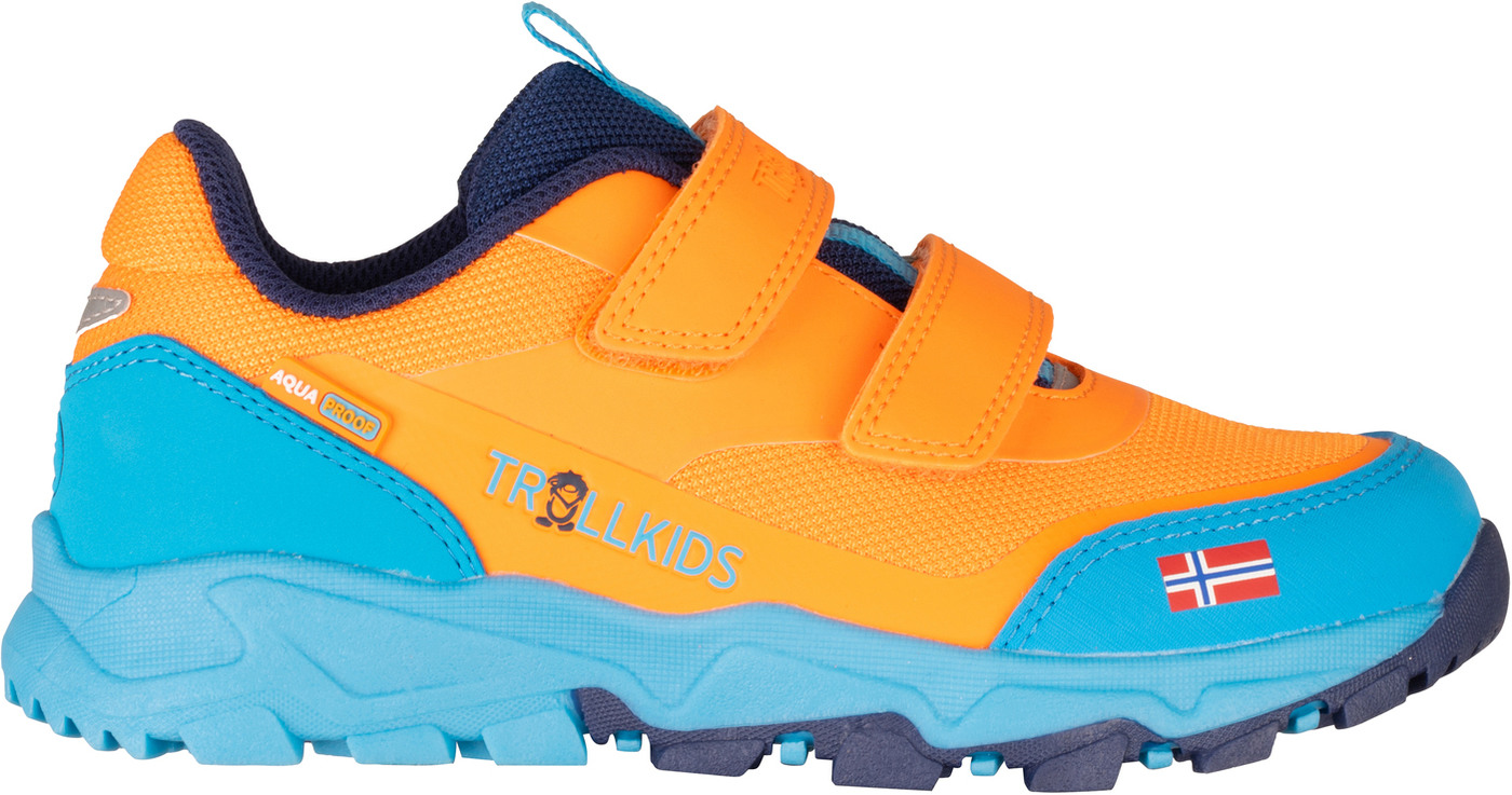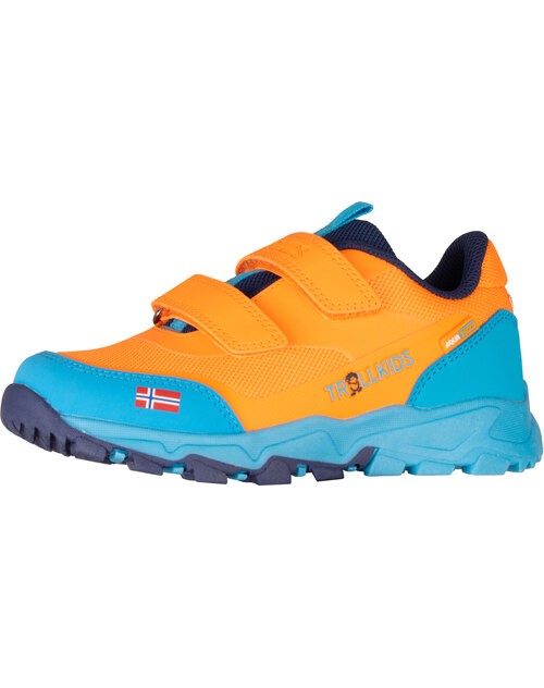The KIDS PREIKESTOLEN HIKER by TROLLKIDS is a robust and waterproof hiking shoe with Velcro fasteners that is in its element when playing, romping or hiking. Reinforcements in the heel and toe area ensure stability and protect the foot. The breathable shoe is softly lined on the inside, so nothing can pinch or chafe. With removable insole.
