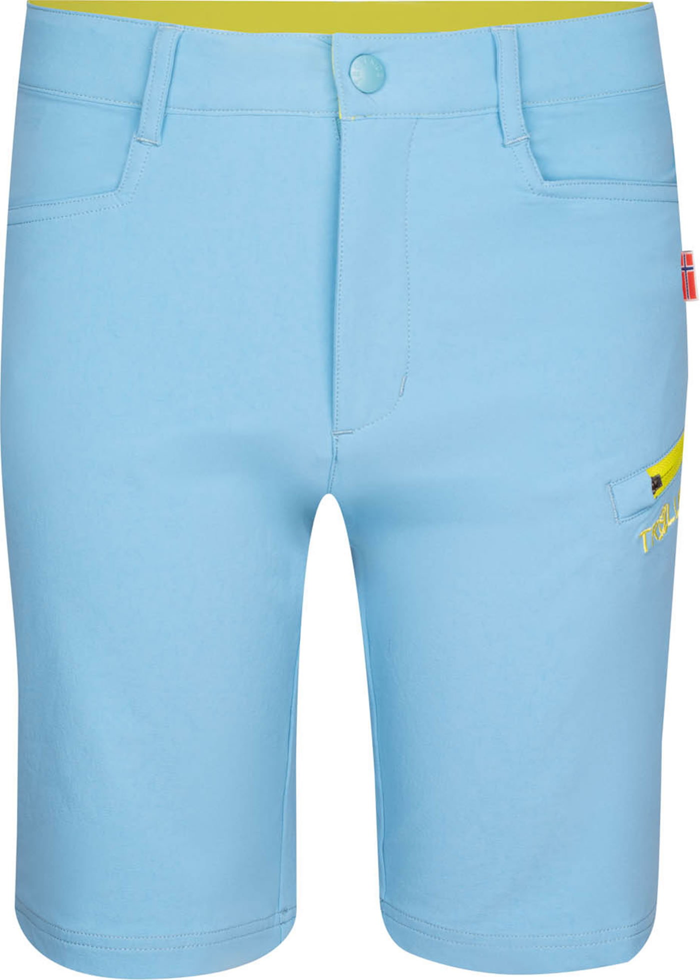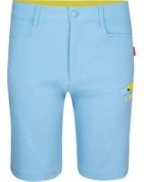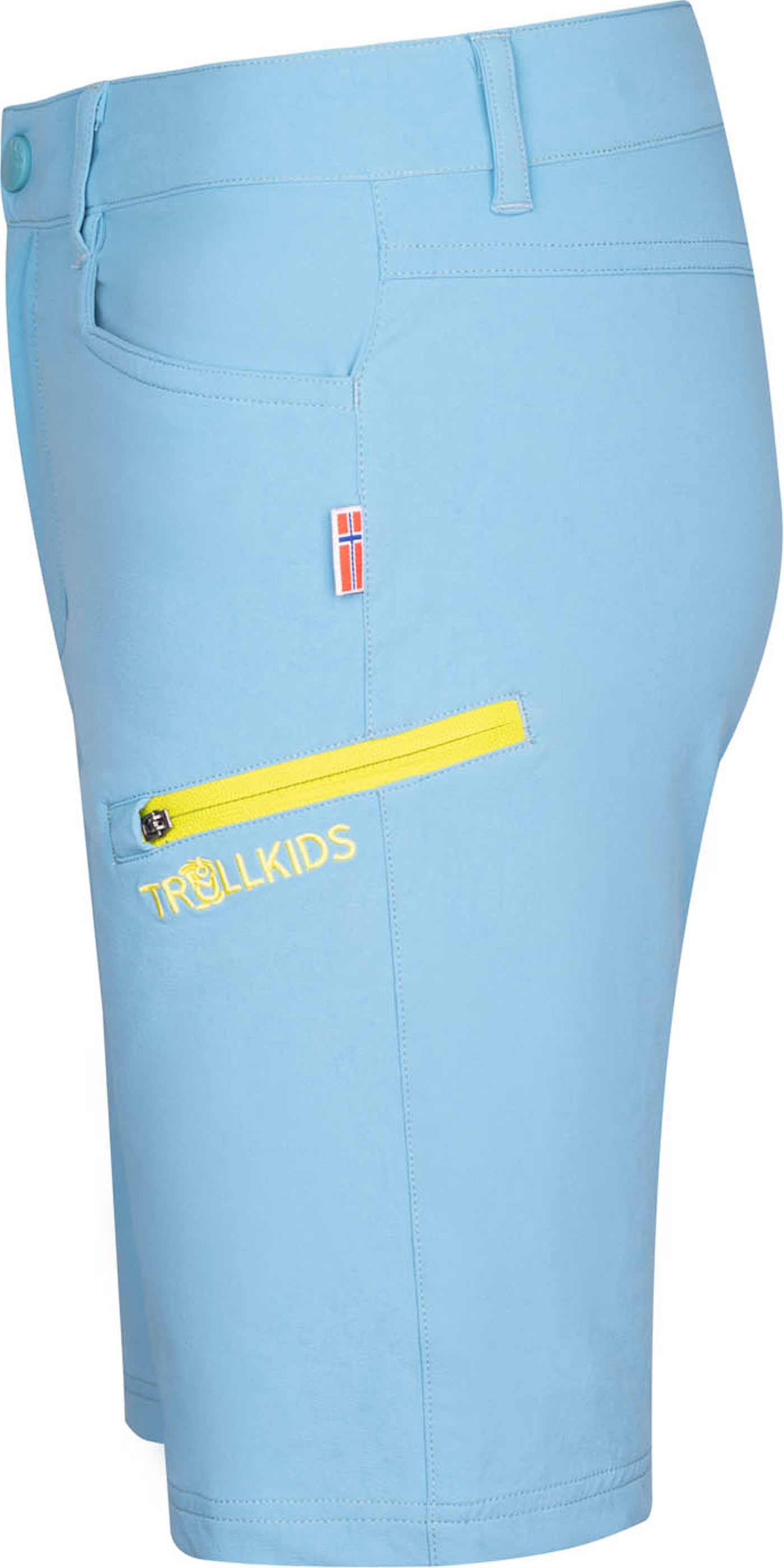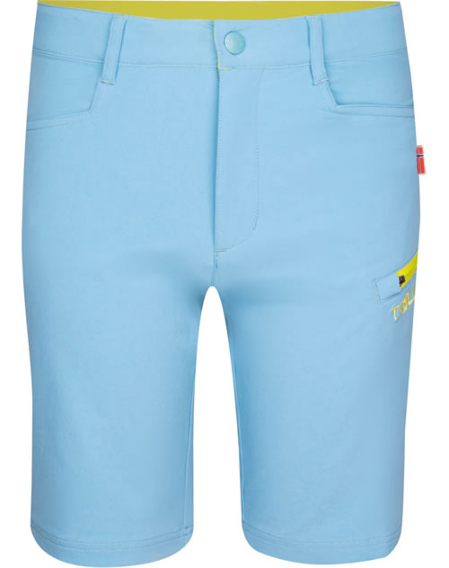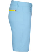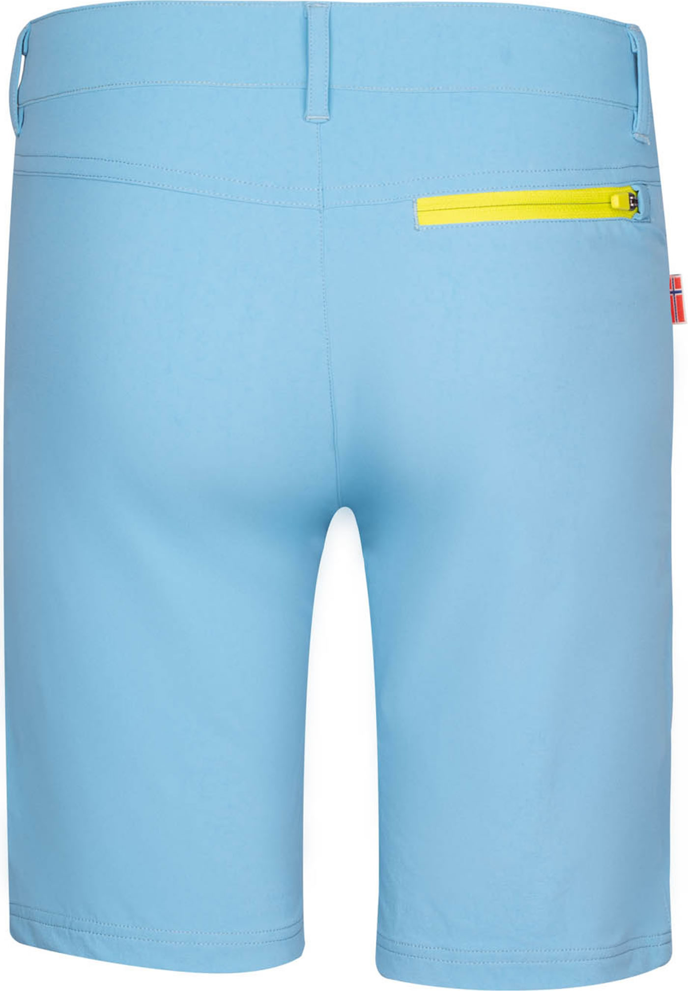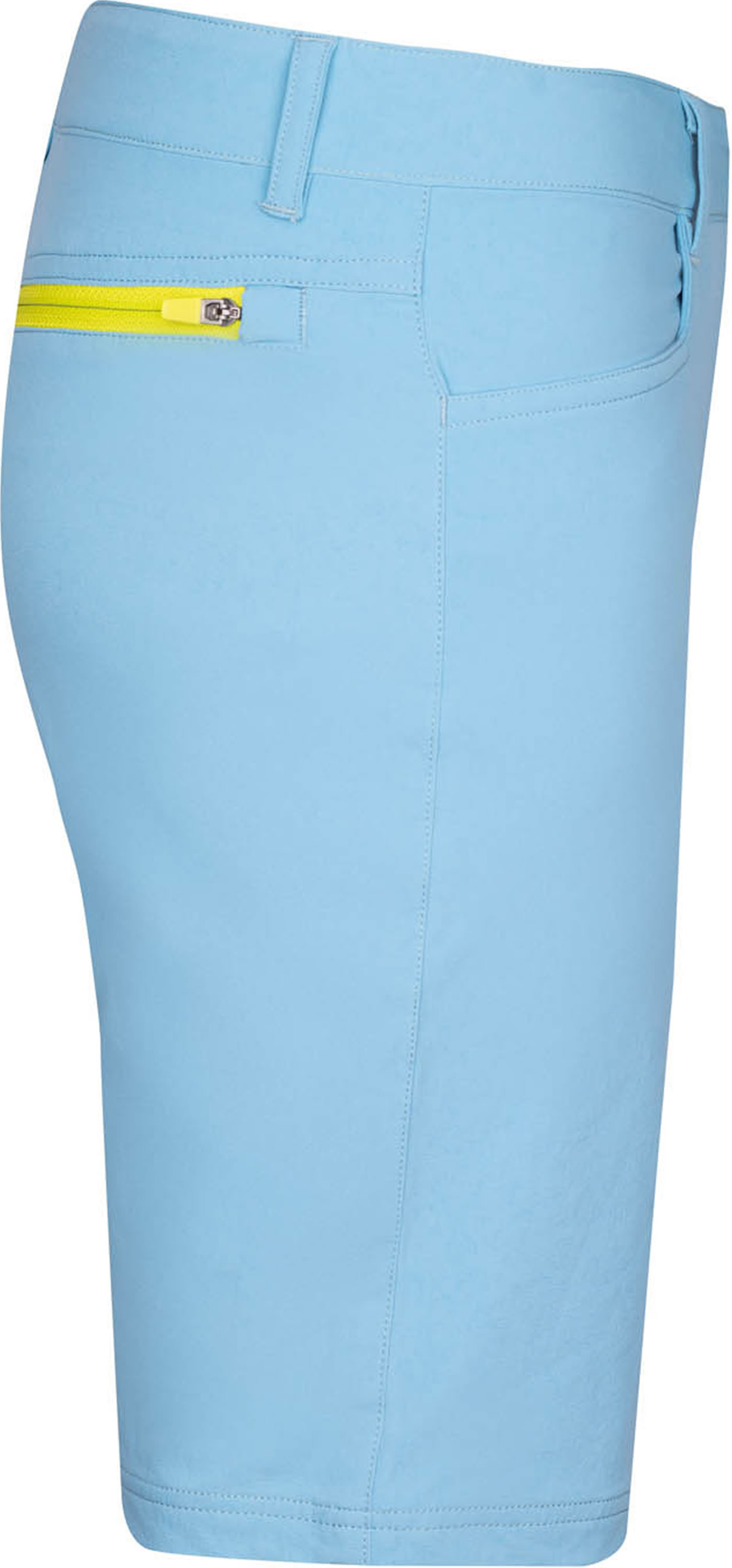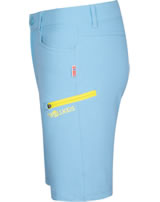 Softshell shorts made from waterproof and breathable fabric. The elastic fabric offers a lot of freedom of movement. The width can be regulated at the waist. The front pockets and the two pockets with color-contrasting zippers offer space for small treasures.