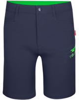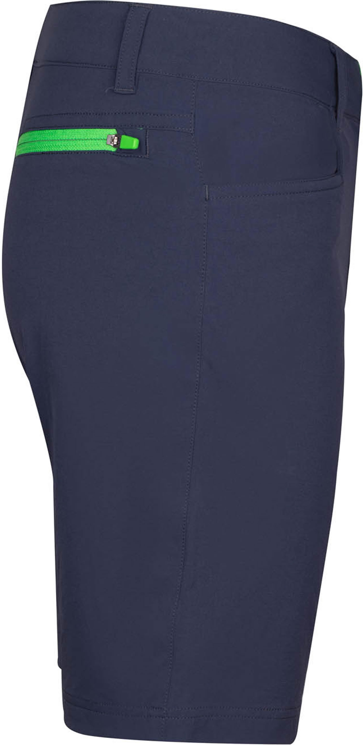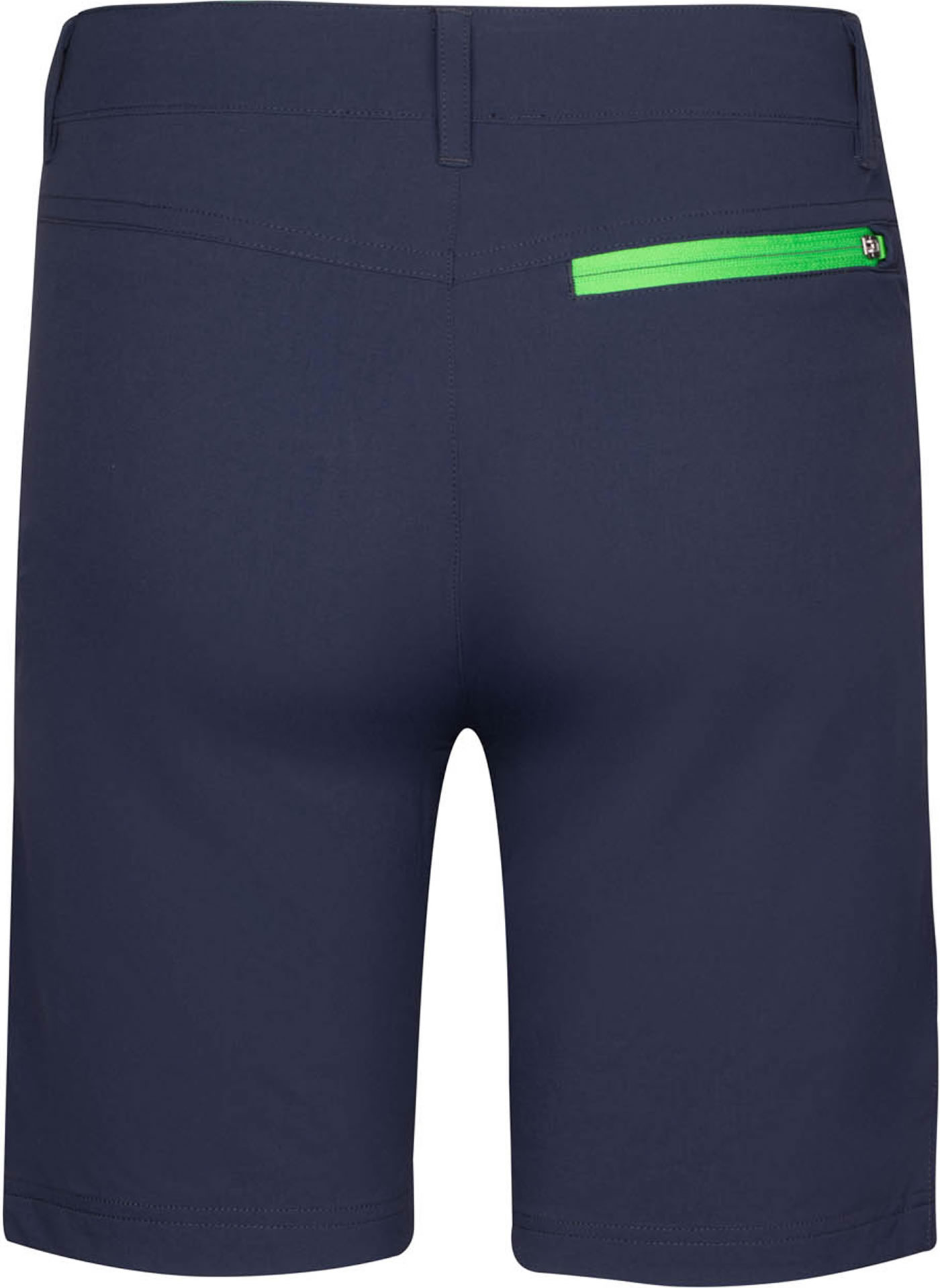 Softshell shorts made from waterproof and breathable fabric. The elastic fabric offers a lot of freedom of movement. The width can be regulated at the waist. The front pockets and the two pockets with color-contrasting zippers offer space for small treasures.