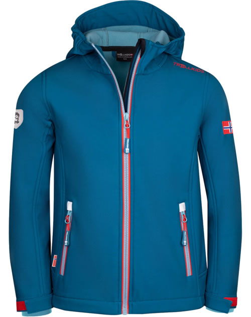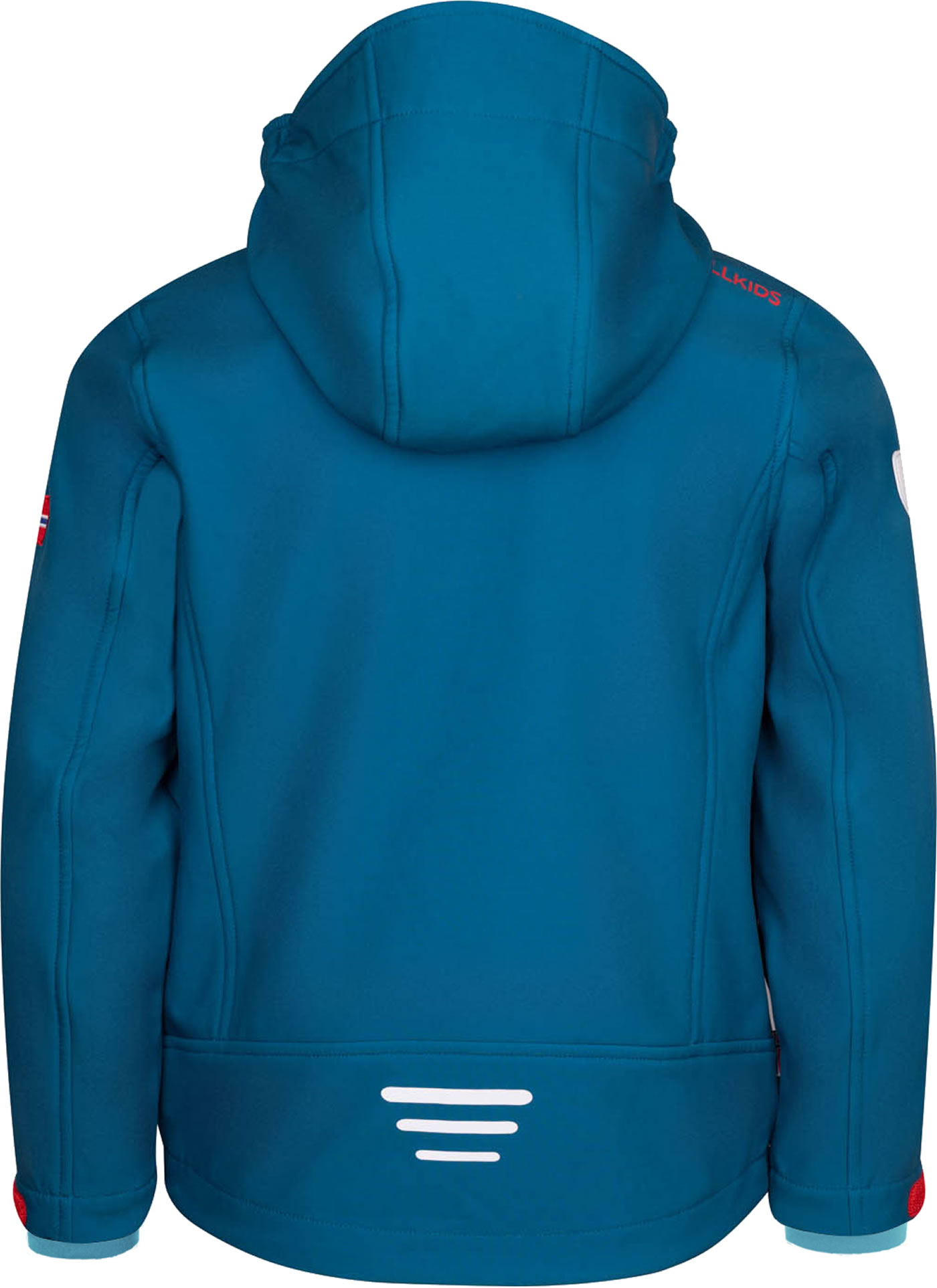 Trollkids Kids Softshell-Jacket TROLLFJORD petrol/d. blue/spicy red