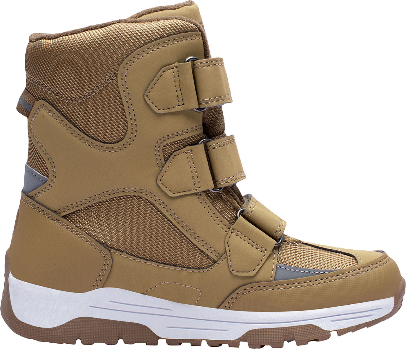 Waterproof winter boots Lofoten with sealed seams by TROLLKIDS. The stable, high shaft supports the child's foot. The inside of the shoe is insulated with a fluffy fleece material and is closed with a triple Velcro fastener. It has reflectors on the front and back. With a practical pull-on loop on the heel and removable insole.