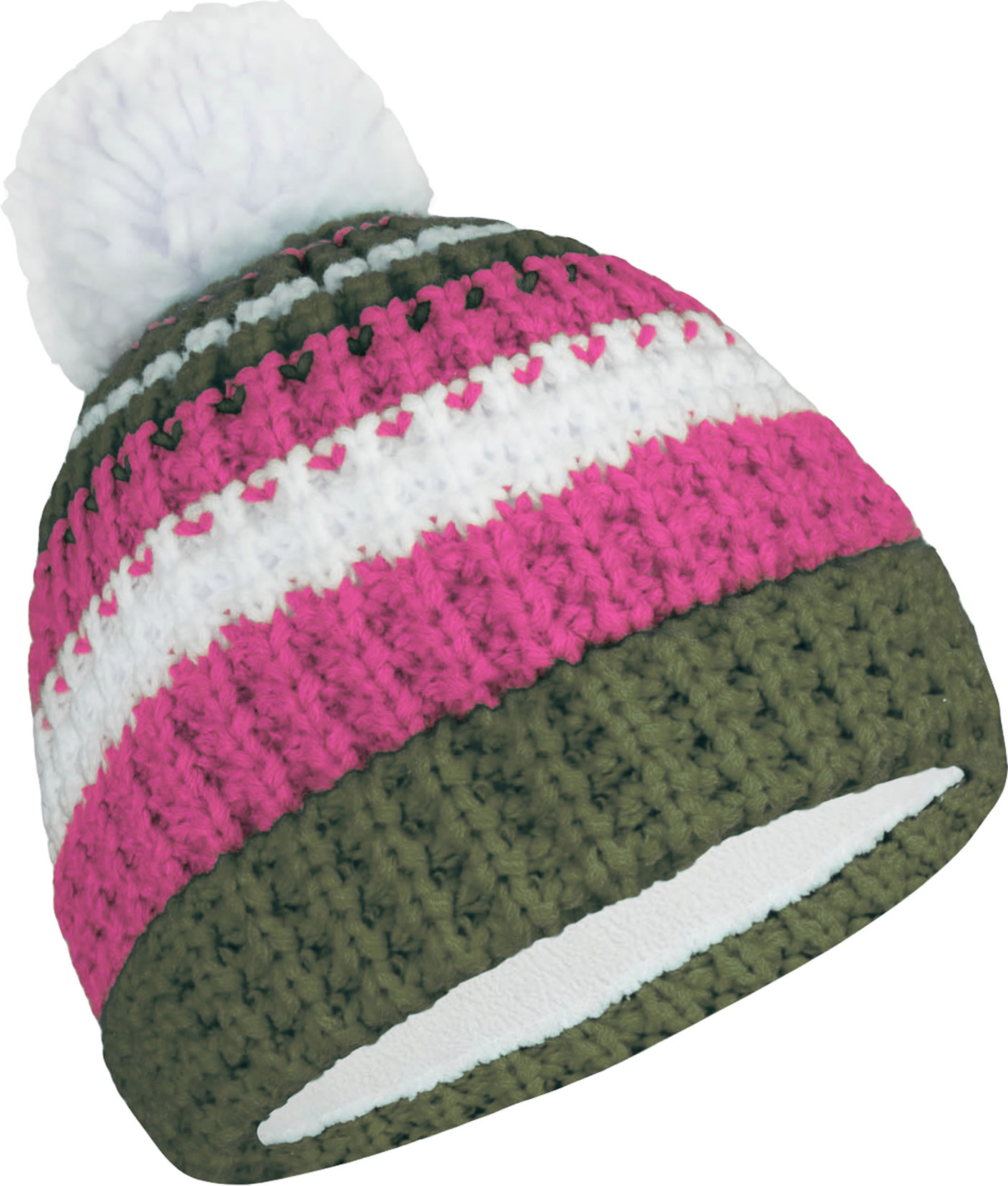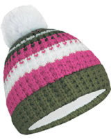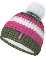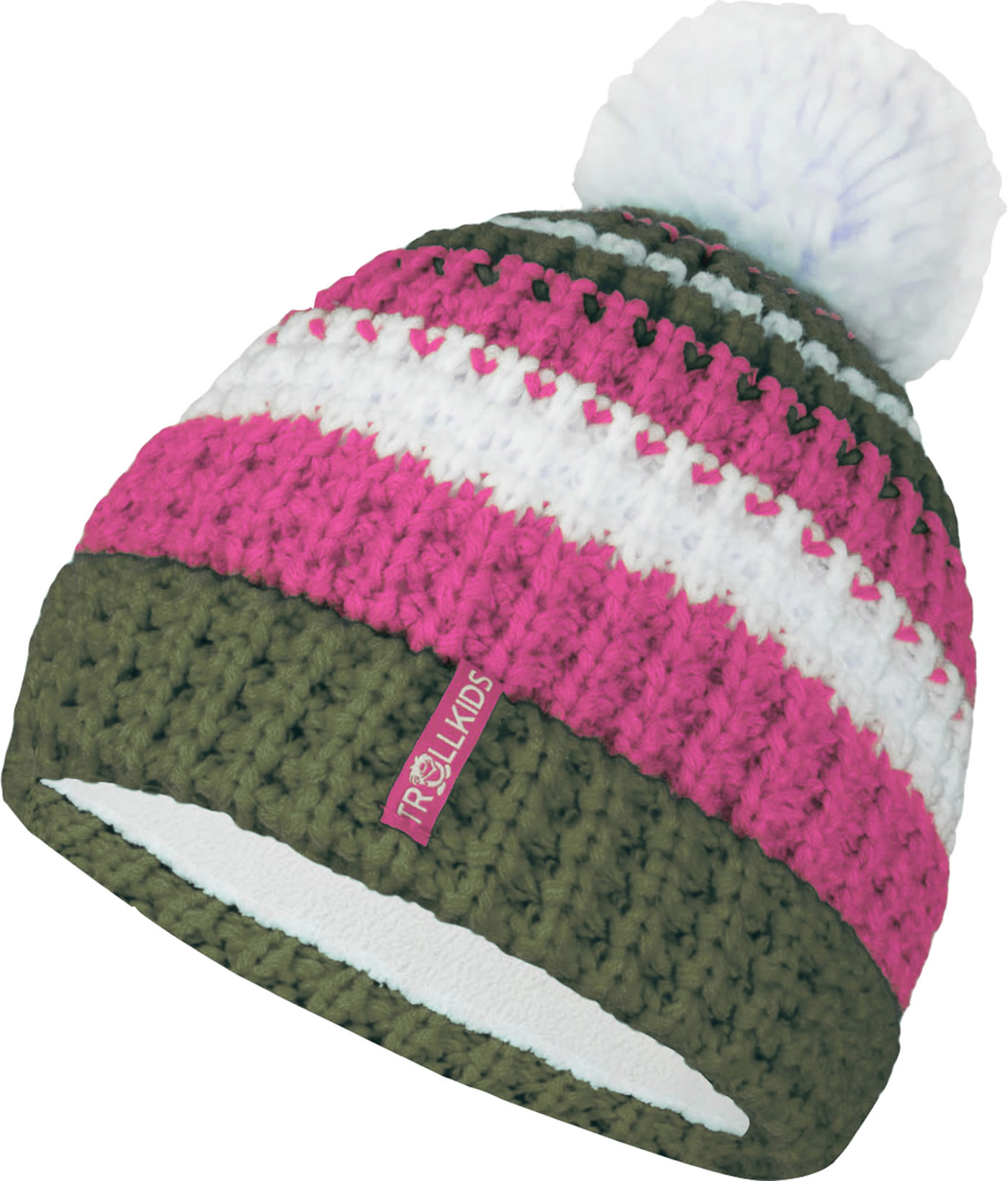 Trollkids Knitted Hat Girls HALLINGDAL Bobble Cap dusky olive/magenta