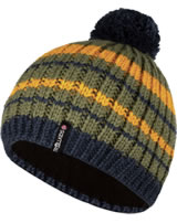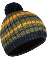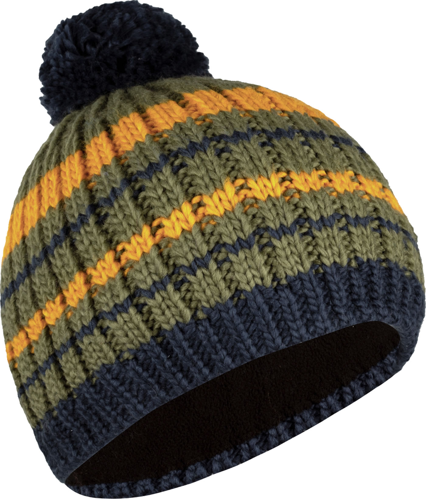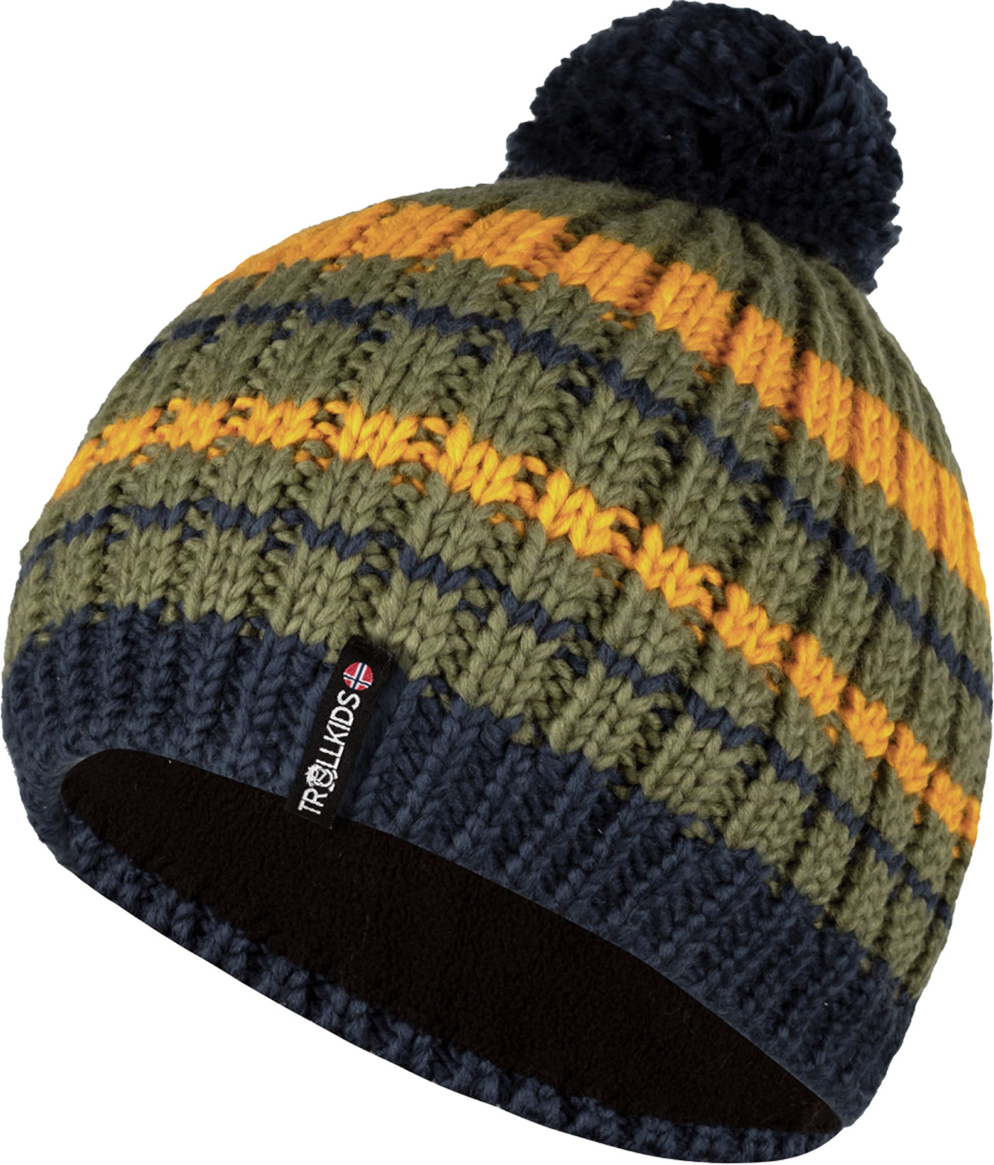 Trollkids Knitted Hat Kids HAFJELL Bobble Cap moss/yellow/blue