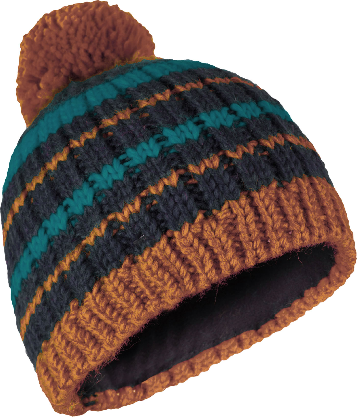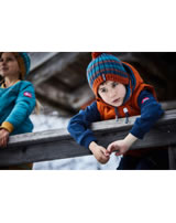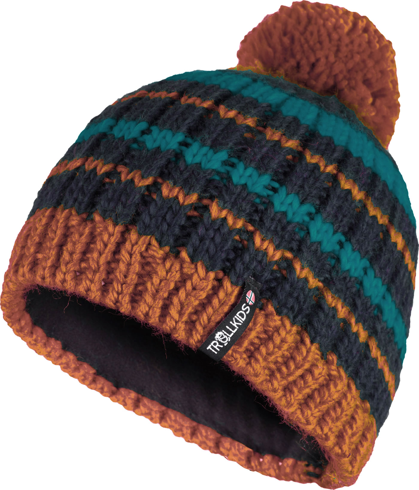 Trollkids Knitted Hat Kids HAFJELL Bobble Cap - Night Sky/Deep Lagoon/Cinnamon