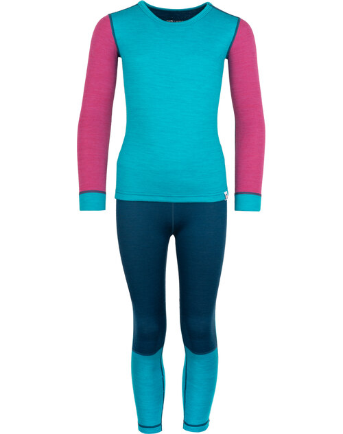 Trollkids Underwear Set II KIDS MERINO BASELAYER SET II - Dark Turquoise/Bright Berry/Madeira Blue
