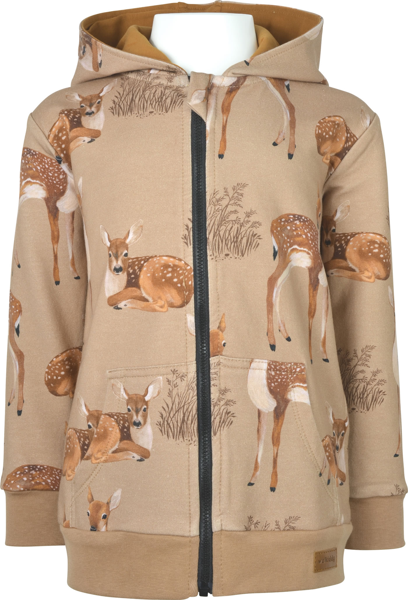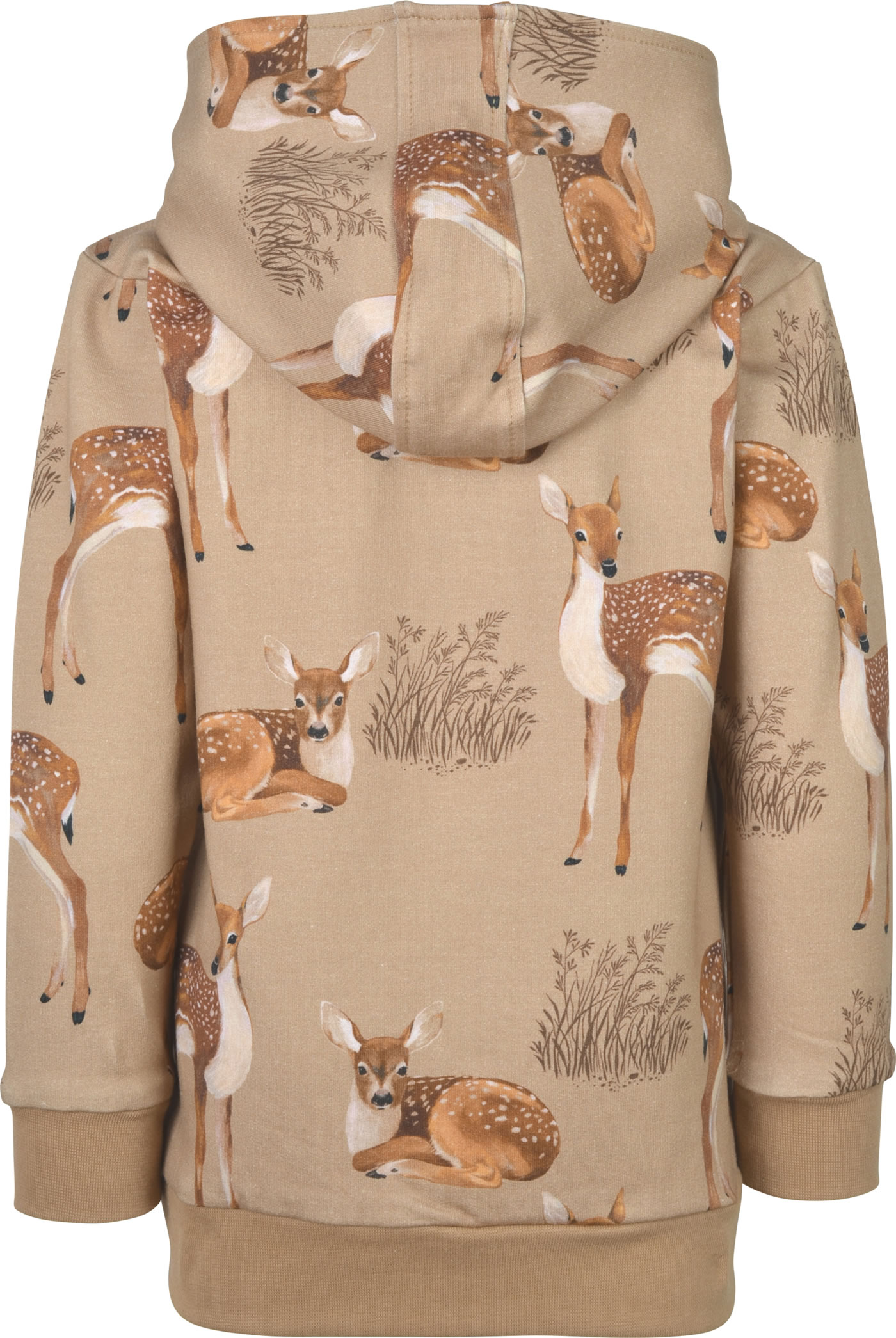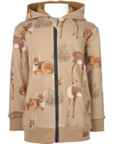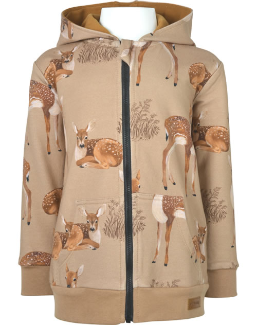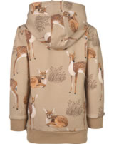 Sweat jacket with hood by WALKIDDY. The design with the beautiful fawns is an absolute eye-catcher. The lined hood and the two pockets on the front are great details. The material made of organic cotton and the loose cut ensure a high level of comfort. The inside of the sweat jacket is softly brushed and therefore cozy and warm.