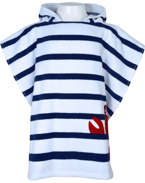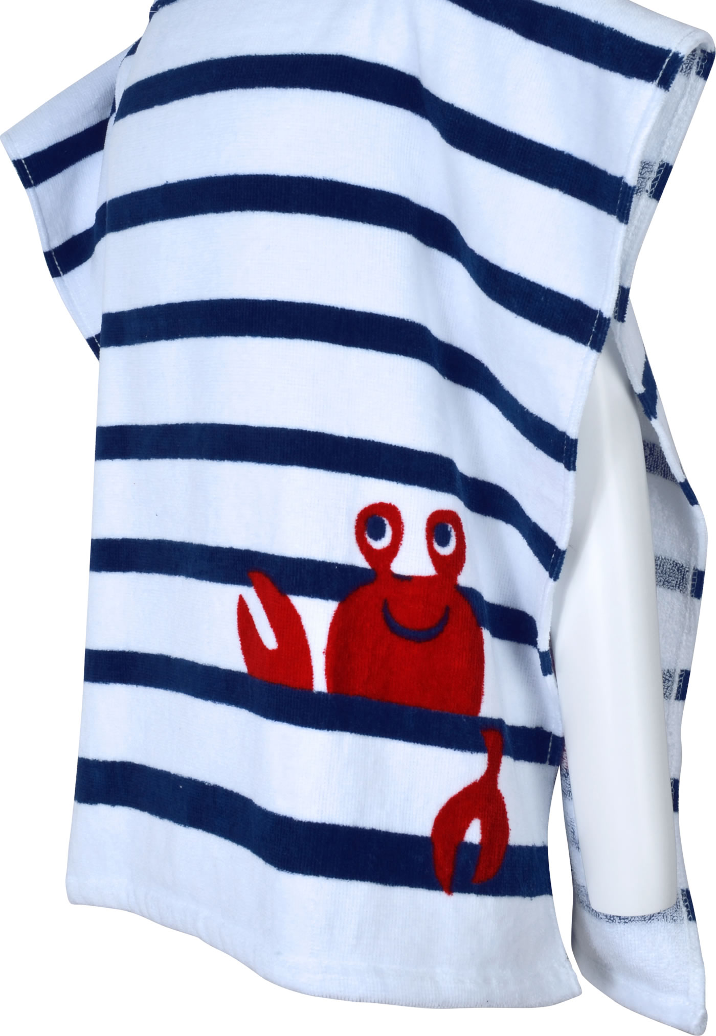The cozy hooded bathing poncho by WEEKEND A LA MER is a real eye-catcher. There is a red crab on the front and back
