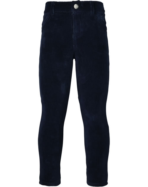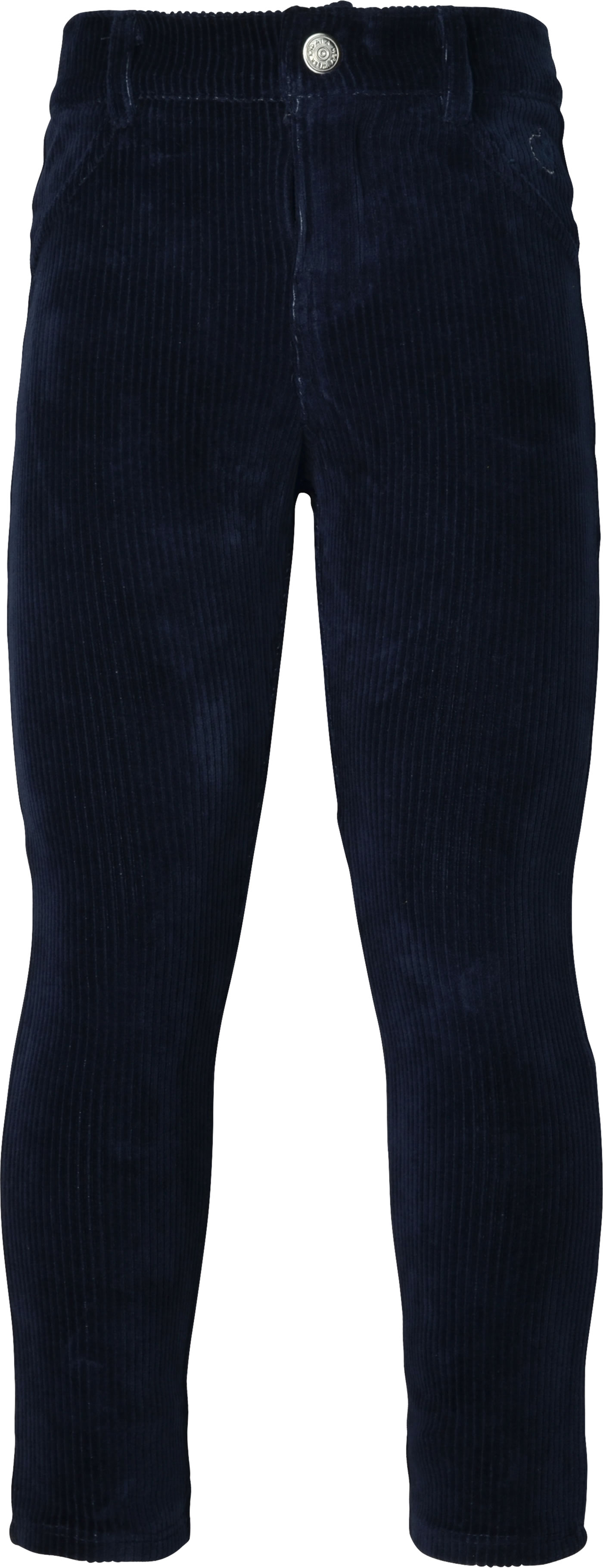Leggings made of soft and elastic corduroy by WEEKEND A LA MER for girls. The pants are closed with a press stud and zip. The indicated pockets on the front and the small heart embroidery are nice details.