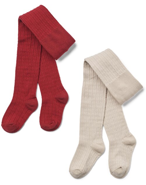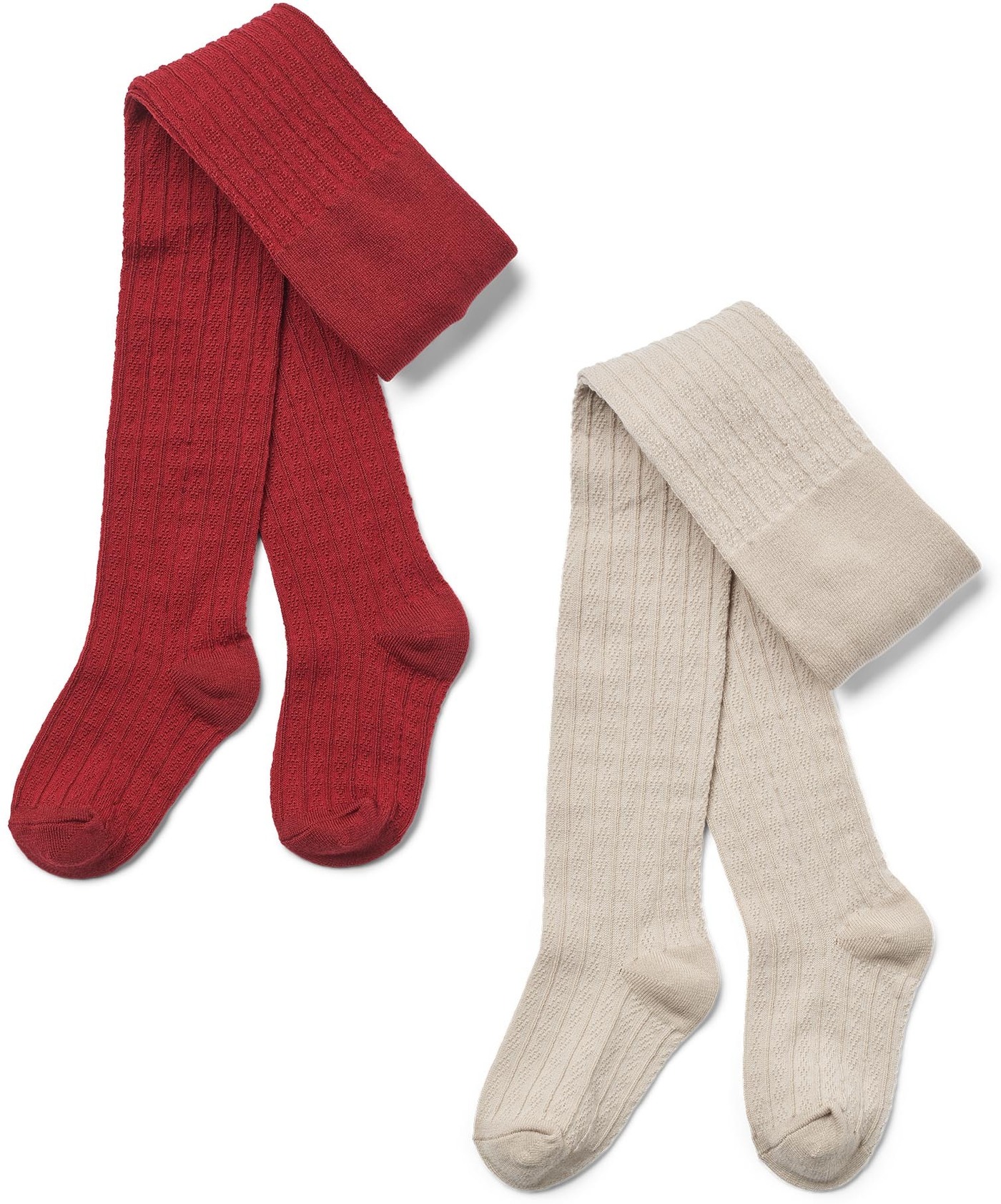 Wheat 2 pk Wool Lace Tights Karla - Cherry Red
