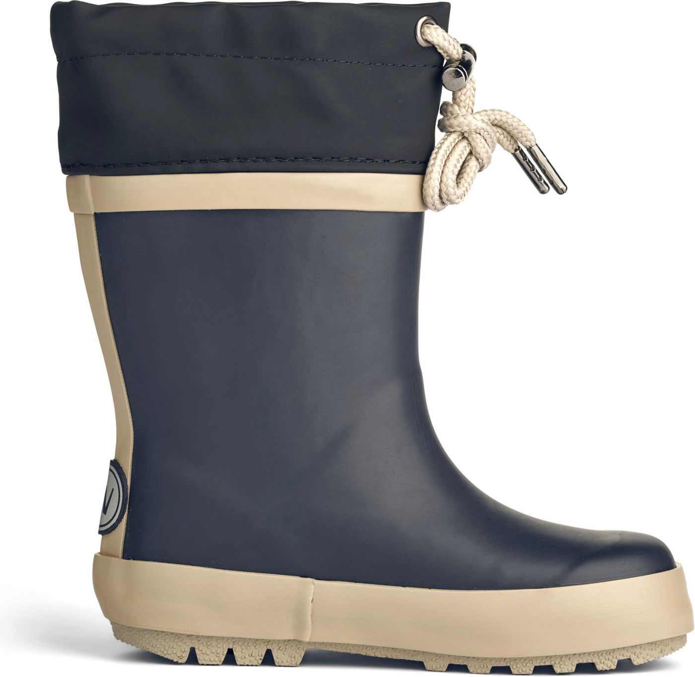 The great thermal rubber boots with a high shaft and soft fleece lining from WHEAT for children are an ideal companion for wet and cold autumn and winter days. The robust footwear is lined with polyester wool. The insoles are removable. The shaft can be adjusted in width with a drawstring and thus adapts to the leg. Reflective details ensure that children are seen faster and better in the dark season.