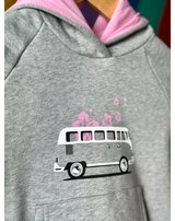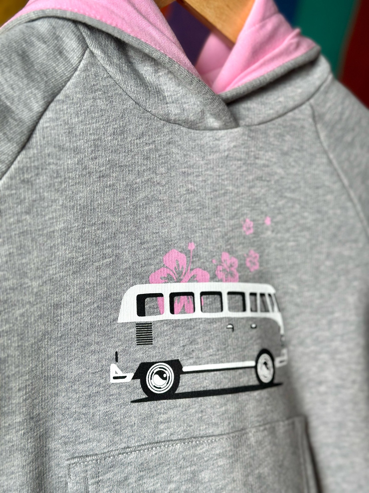 The VW bus print on the front is a real eye-catcher. The hood is lined with a contrasting cotton fabric.