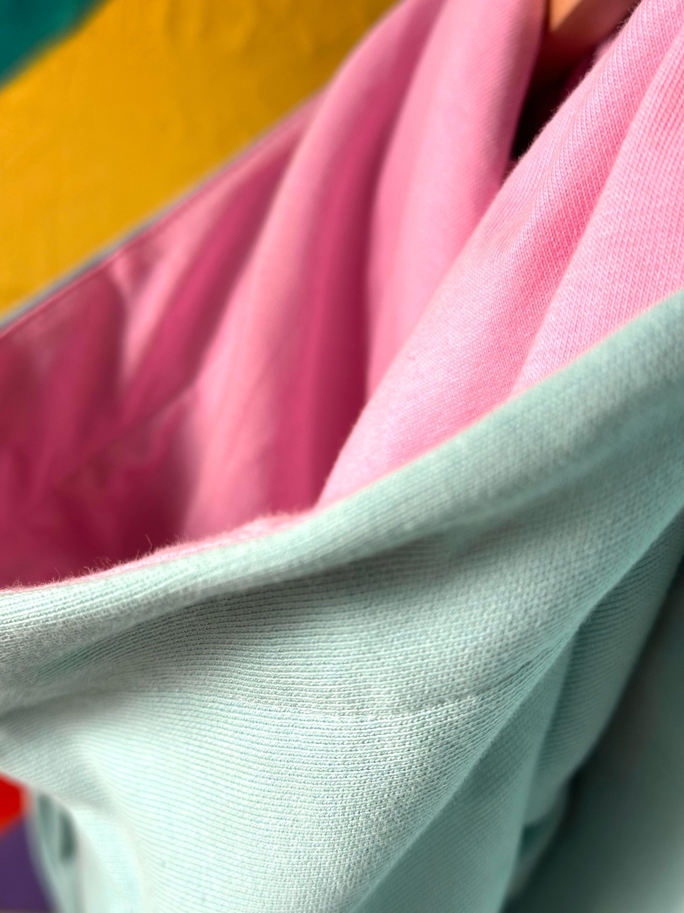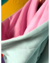The VW bus print on the front is a real eye-catcher. The hood is lined with a contrasting cotton fabric.