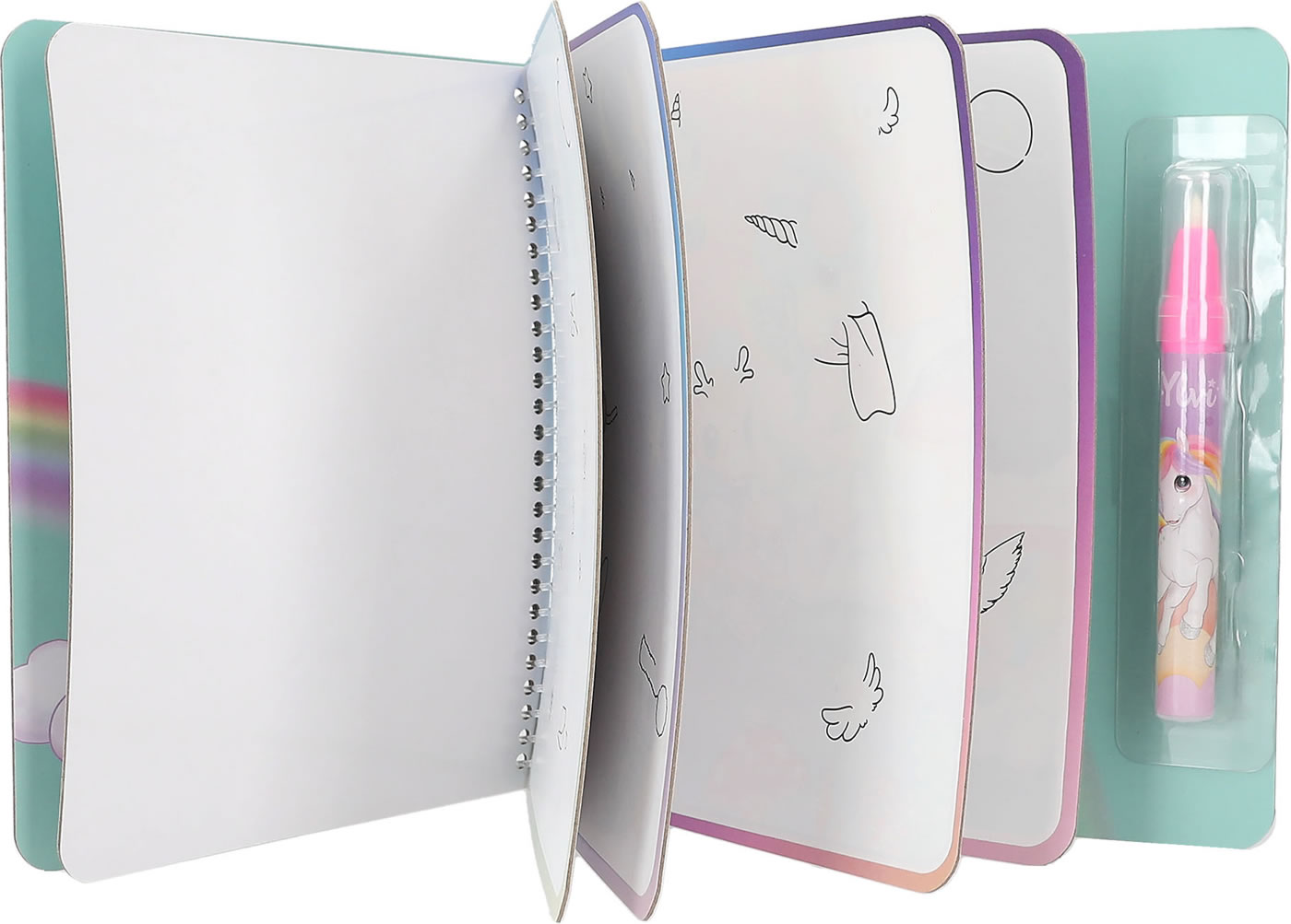 Magically paint: In Ylvi's Aqua Magic Book, beautiful motifs appear as if by magic when you stroke the white pages with the water pen (fillable). When the paper dries later, the images disappear again. The five spiral-bound pages are made of very strong cardboard so they don't get soggy.