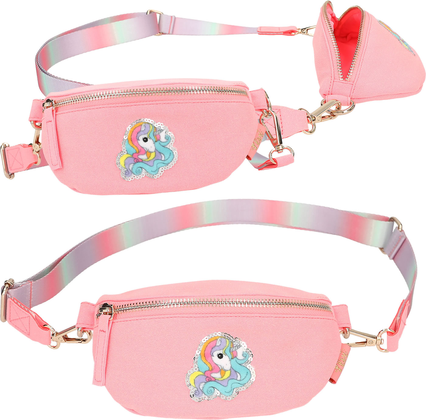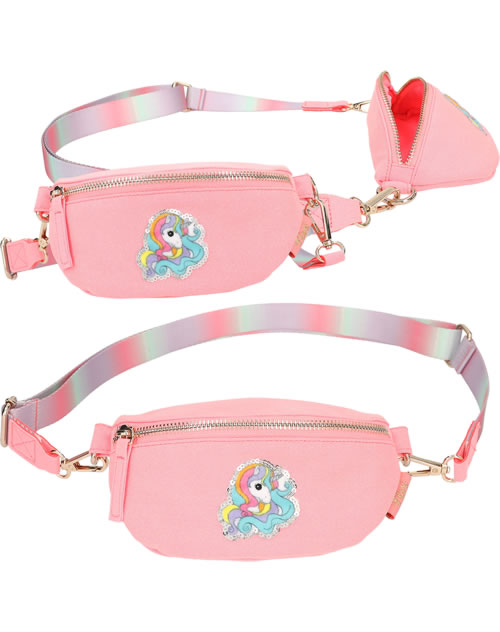 A unicorn dream to wear over your shoulder: The small, slightly glittery pink bag from Ylvi has a cute unicorn patch with silver sequins on the front and a shoulder strap with a pastel gradient. The bag can be worn diagonally on the upper body as a cross bag or as a belt bag.