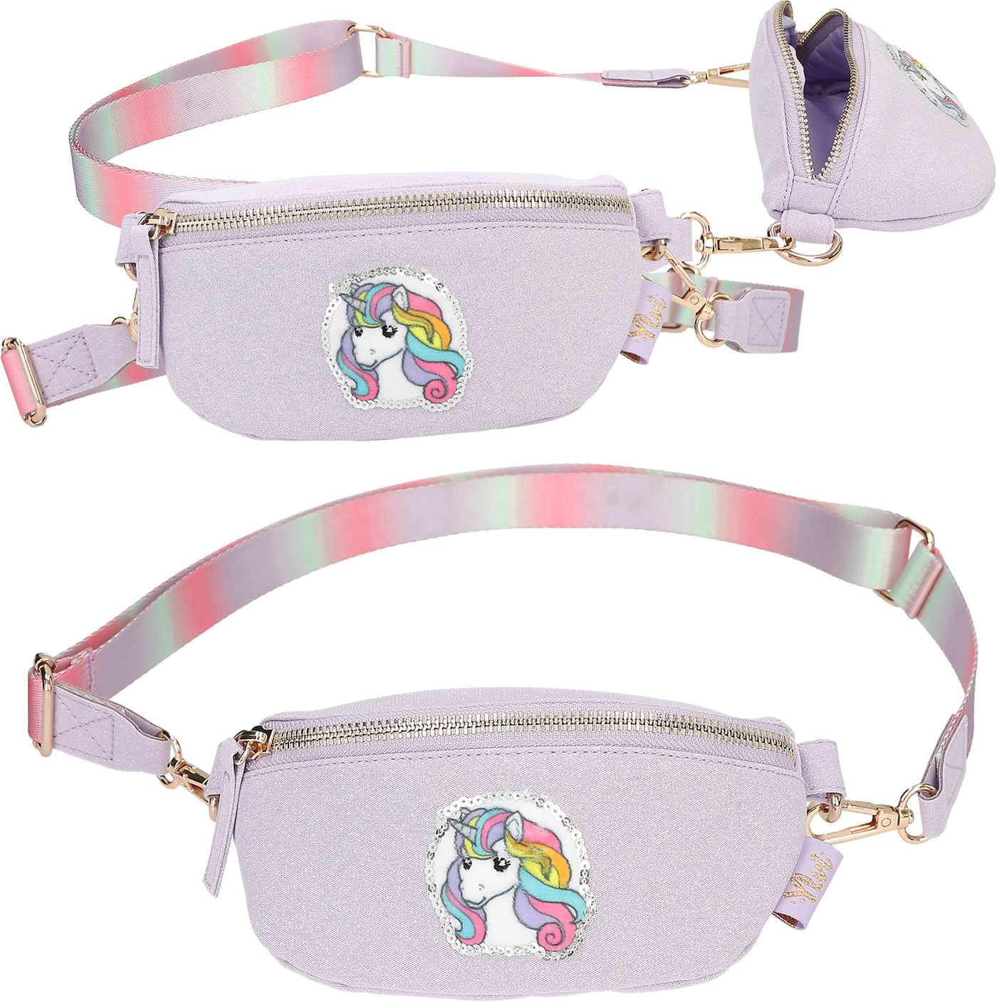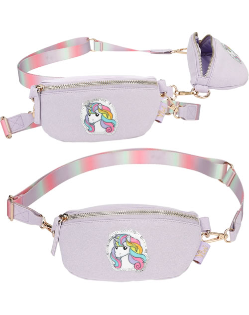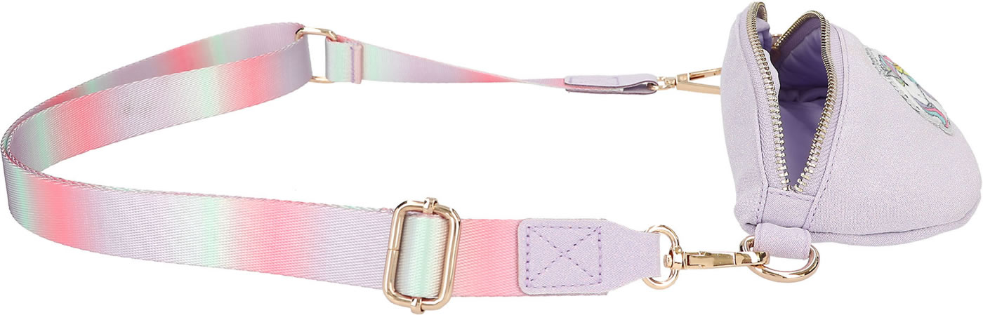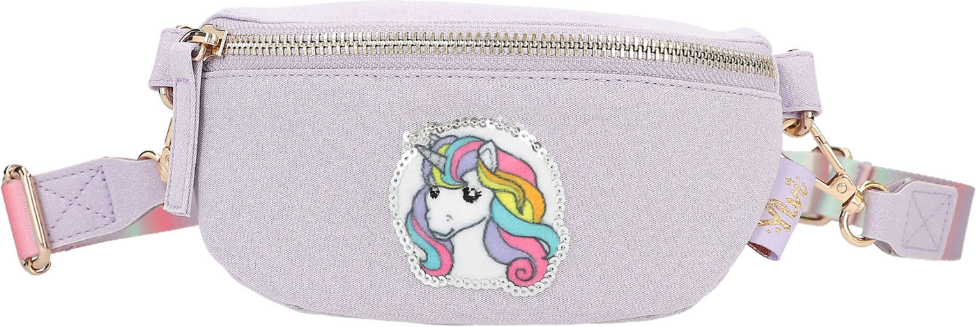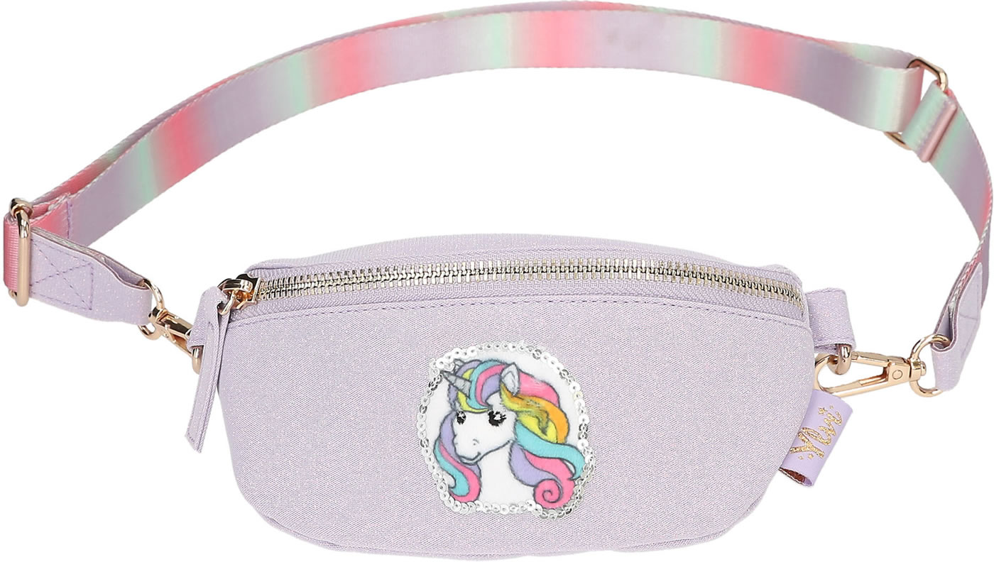 A unicorn dream to wear around your neck: The small, slightly glittery purple bag from Ylvi has a cute unicorn patch with silver sequins on the front and a shoulder strap with a pastel color gradient. The bag can be worn diagonally on the upper body as a cross bag or as a belt bag.