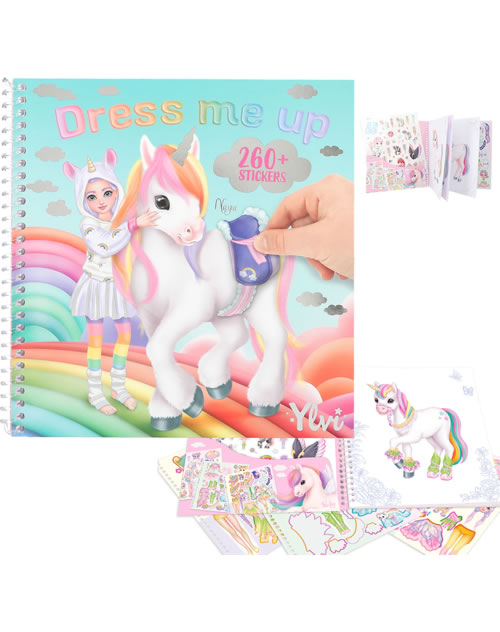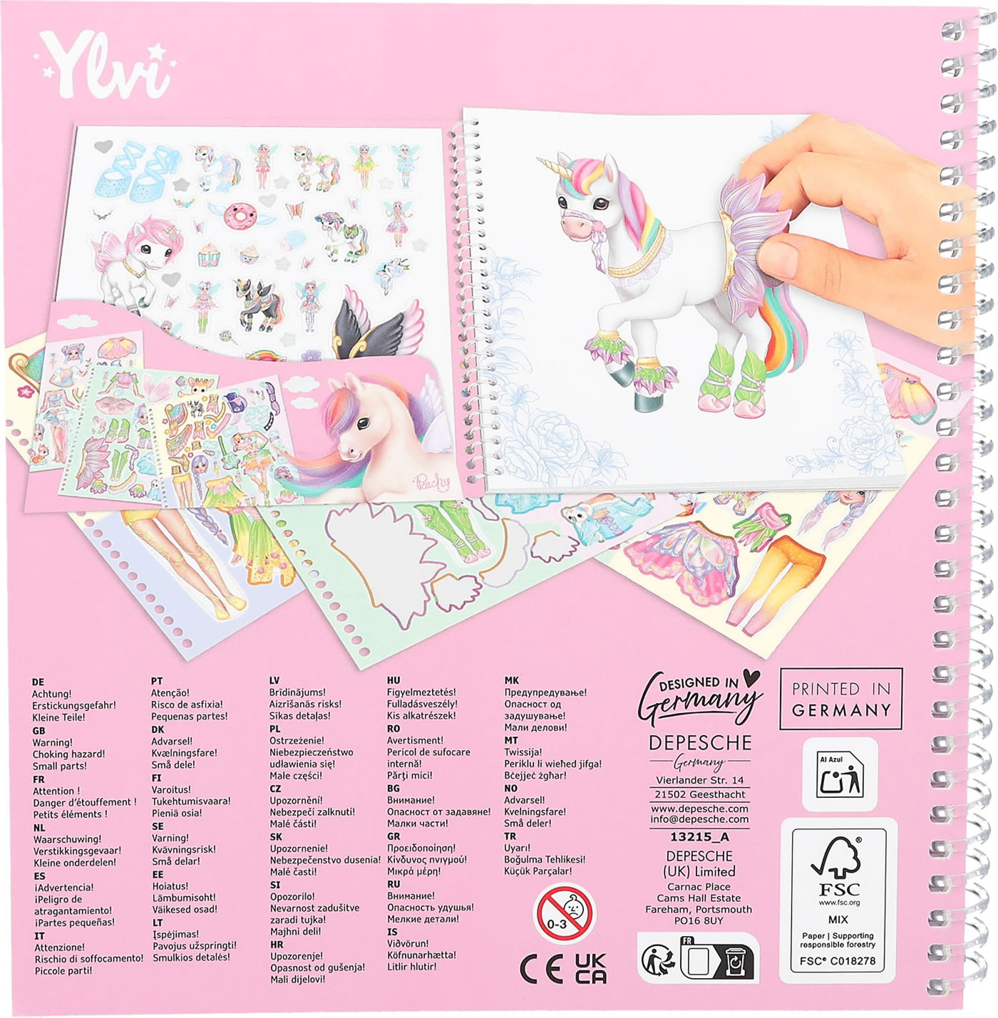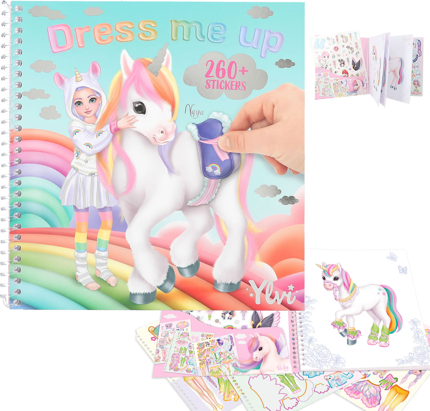Magical looks for fairy Ylvi and her magical friends: The sticker book Dress me up has 24 spiral-bound pages with figurines of Ylvi and her unicorns, which can be decorated with 11 sticker sheets.