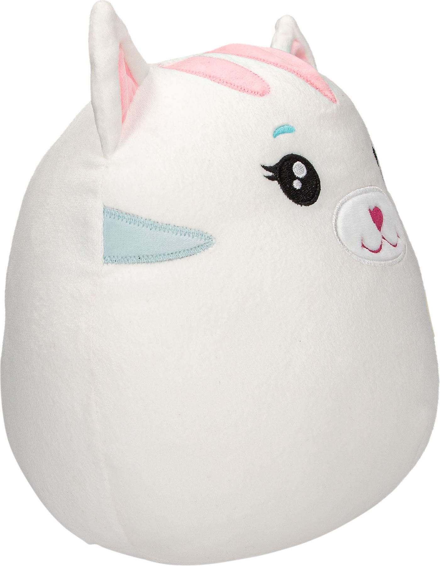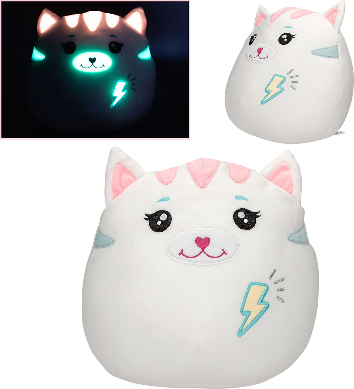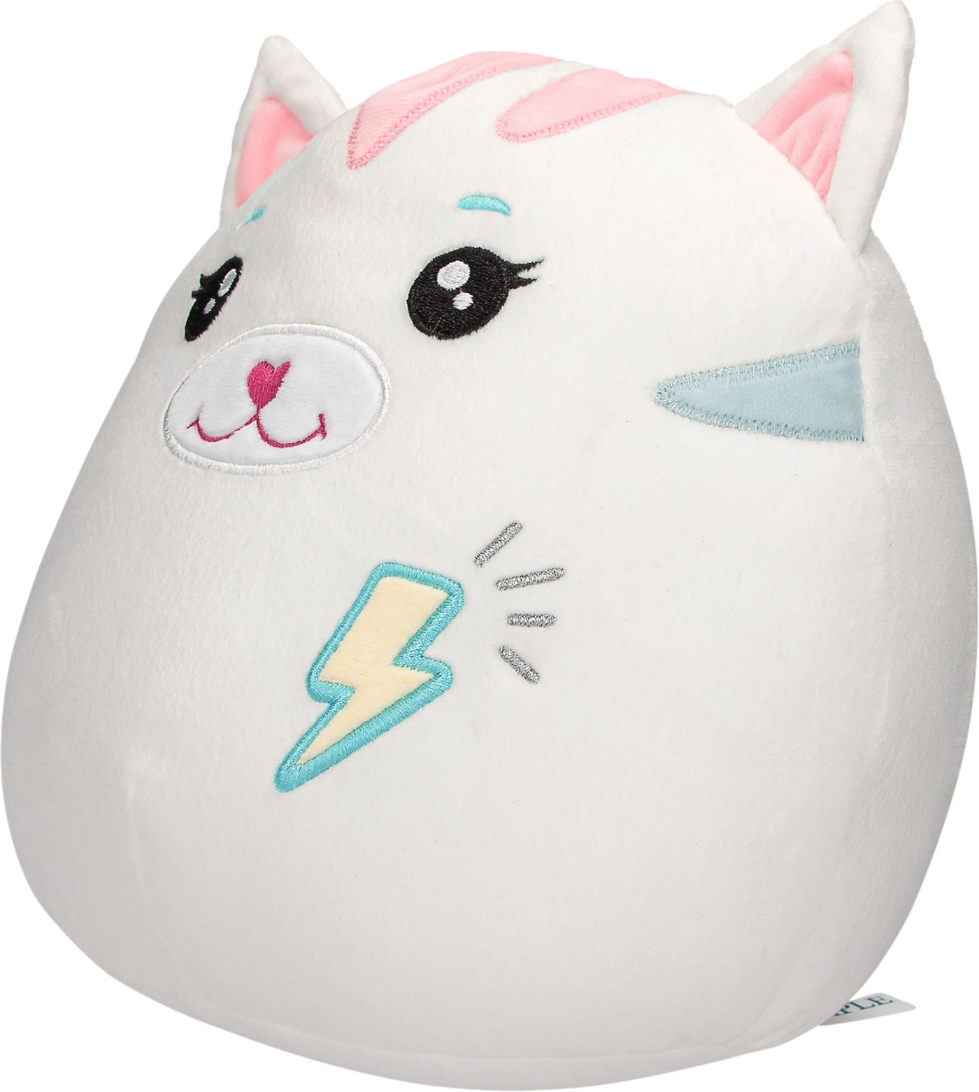 Is it a pillow? Is it a cuddly toy? It's both! The round, white and wonderfully soft plush cat has a super fluffy filling and cute little ears. It gets even cuddlier at night: The nose, the ears (inside), the stripes and the applied lightning bolt of the Ylvi Swoppie kitten glow in the dark! Dimensions: approx. 20 cm