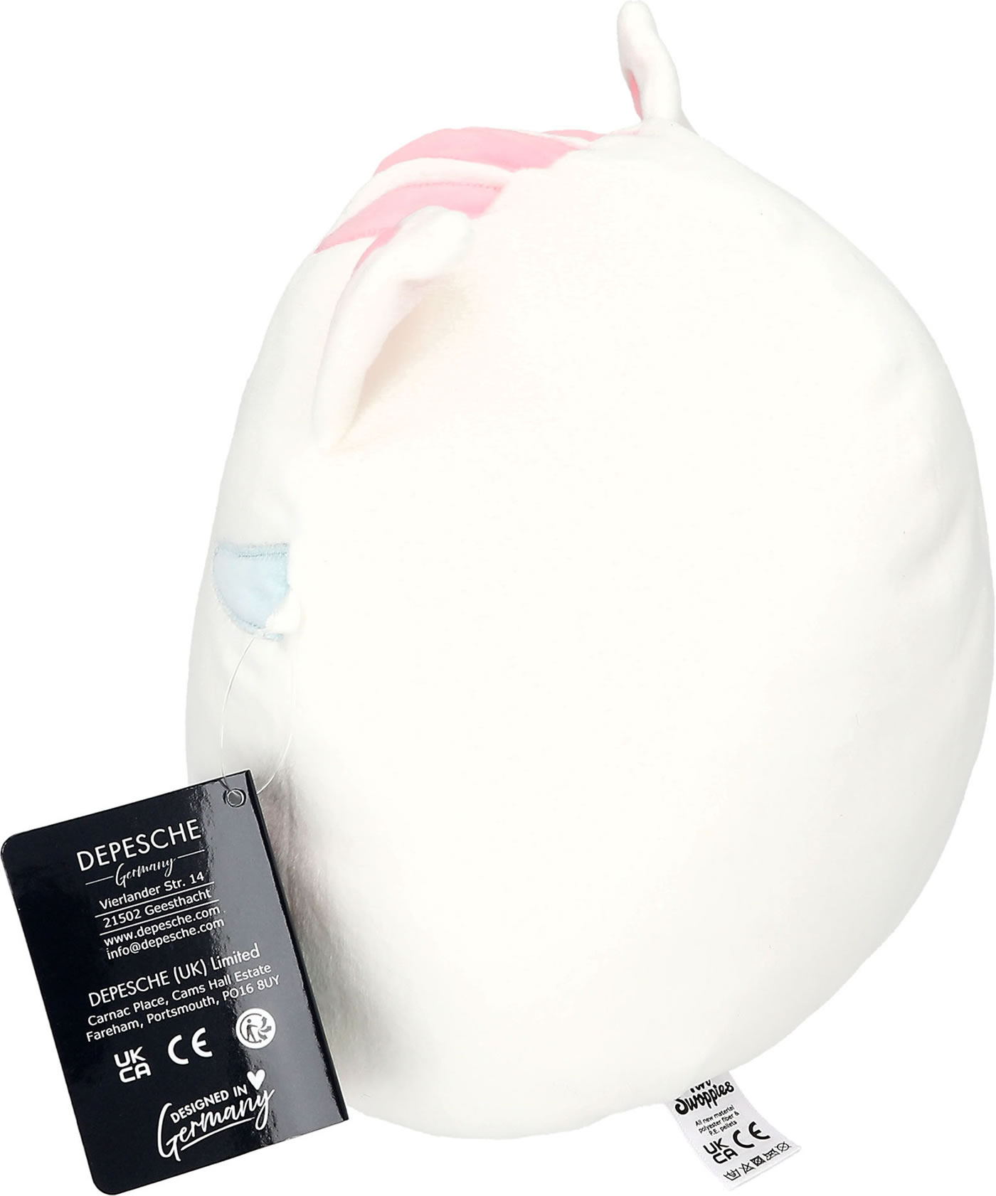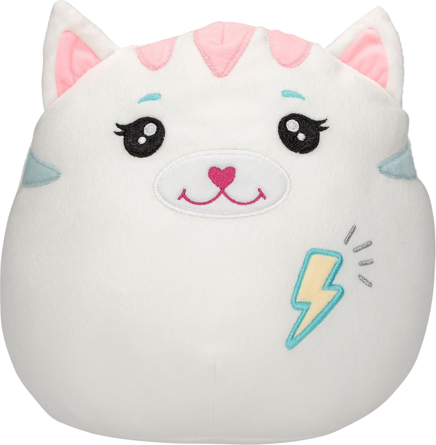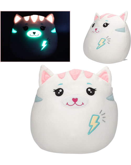 Is it a pillow? Is it a cuddly toy? It's both! The round, white and wonderfully soft plush cat has a super fluffy filling and cute little ears. It gets even cuddlier at night: The nose, the ears (inside), the stripes and the applied lightning bolt of the Ylvi Swoppie kitten glow in the dark! Dimensions: approx. 20 cm