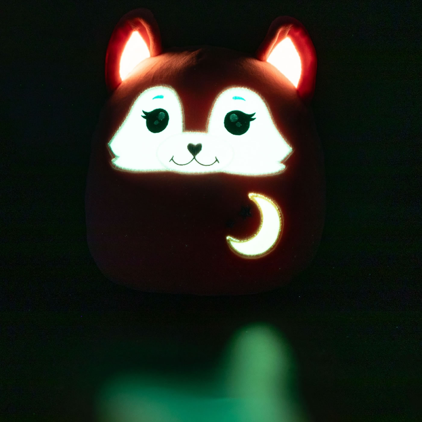 Is it a pillow? Is it a cuddly toy? It's both! The round, coral-colored and wonderfully soft plush fox has a super fluffy filling and cute little pointy ears. It gets even cuddlier at night: The Ylvi Swoppie fox's field of vision, the ears (inside) and the appliquéd moon glow in the dark. Dimensions: approx. 20 cm