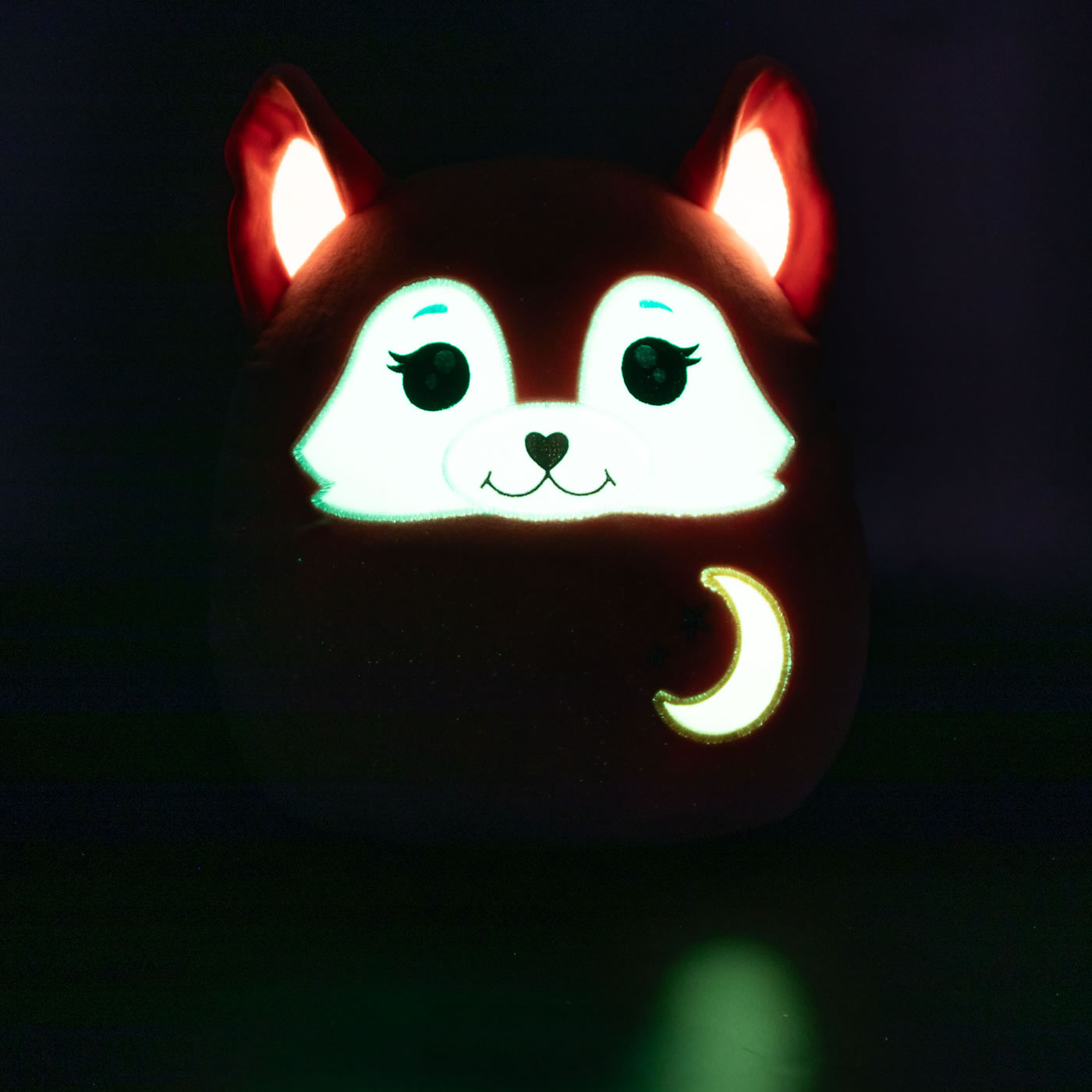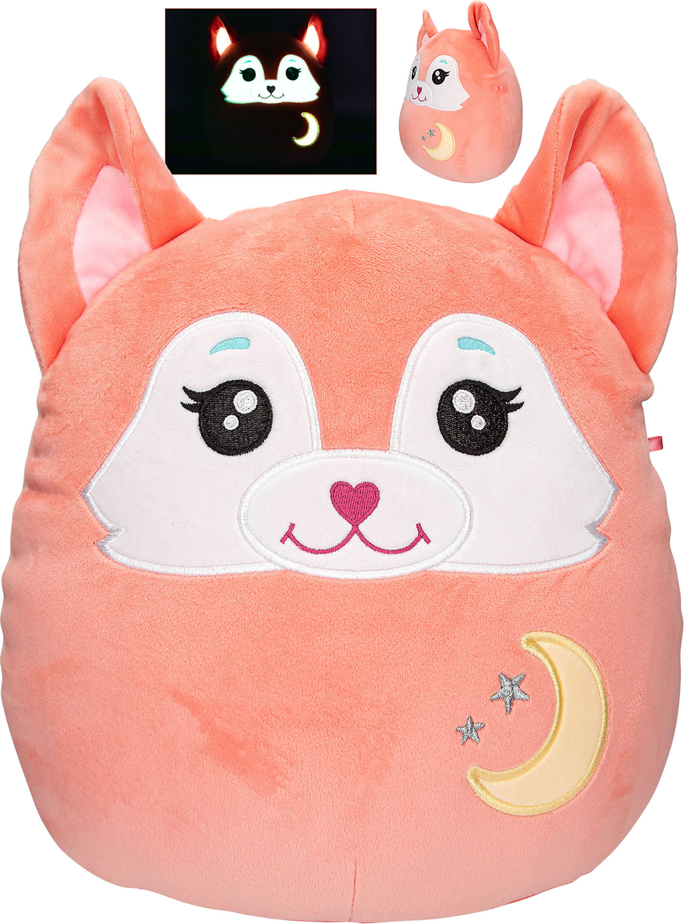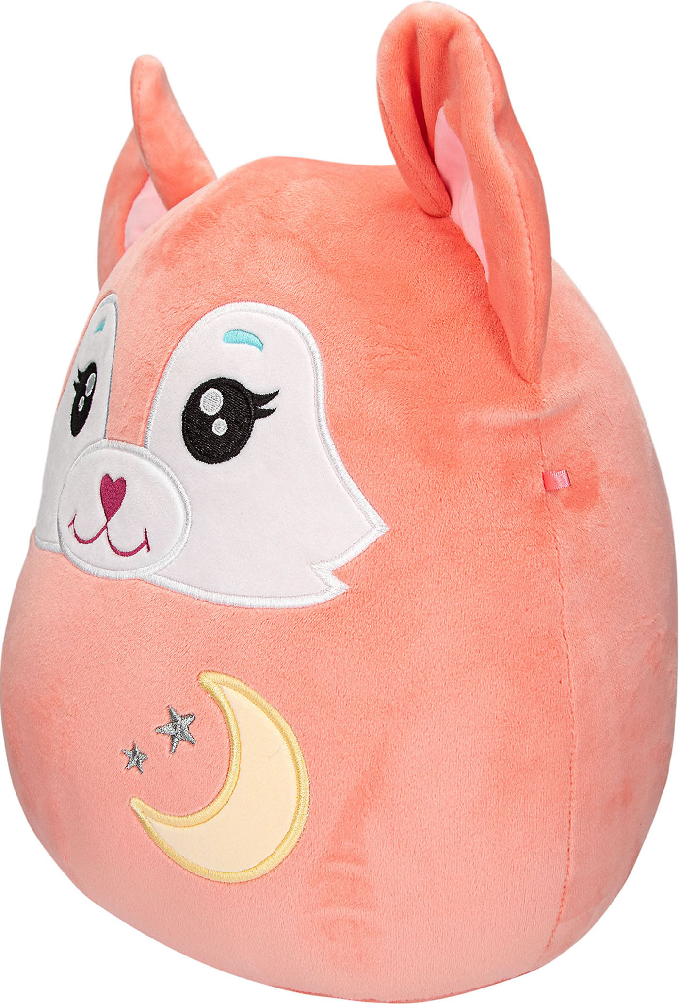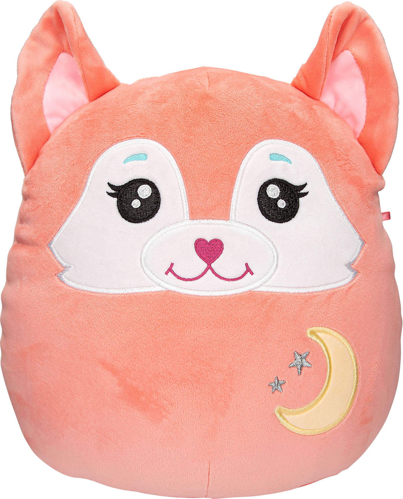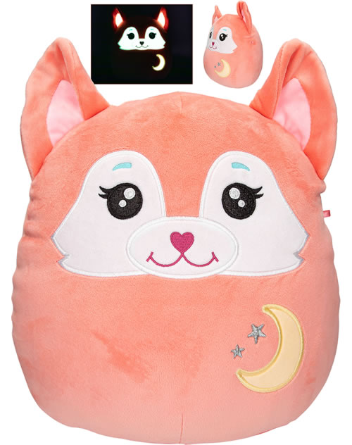 Is it a pillow? Is it a cuddly toy? It's both! The round, coral-colored and wonderfully soft plush fox has a super fluffy filling and cute little pointy ears. It gets even cuddlier at night: The Ylvi Swoppie fox's field of vision, ears (inside) and the appliquéd moon glow in the dark!