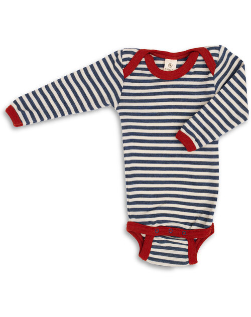 Angenehm weicher Babybody mit langen Ärmeln und Schlupfausschnitt von ENGEL aus Schurwolle. Das Material unterstützt ein gesundes Hautklima. Der geringelte Body ist ein bequemes Basic und lässt sich ideal mit anderen Teilen kombinieren.