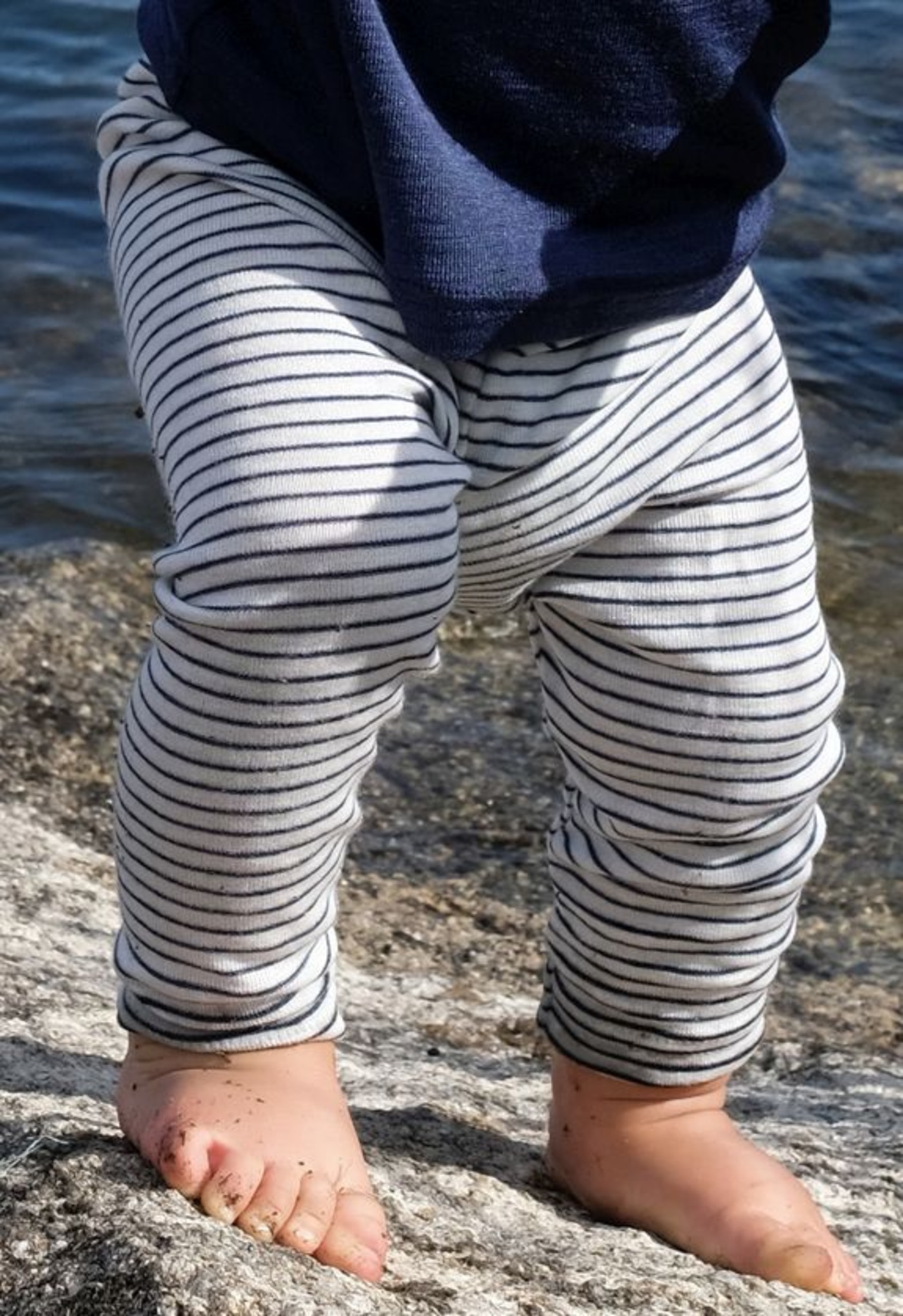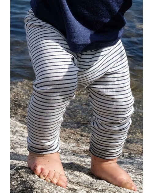 Engel Baby-Leggings gestreift aus Schurwollle/Seide GOTS - Natur/Marine