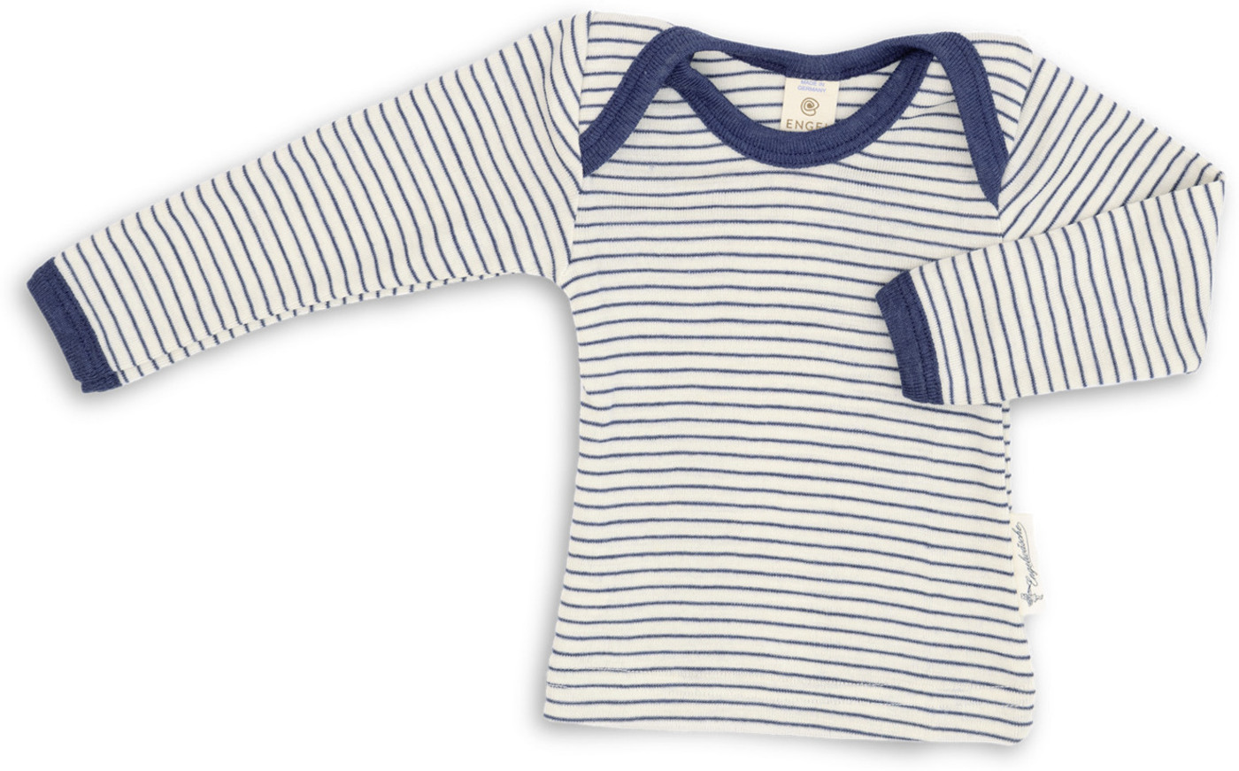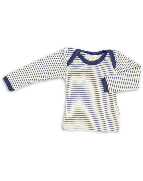 Engel Baby Shirt Langarm geringelt aus Wolle/Seide GOTS - Natur/Marine