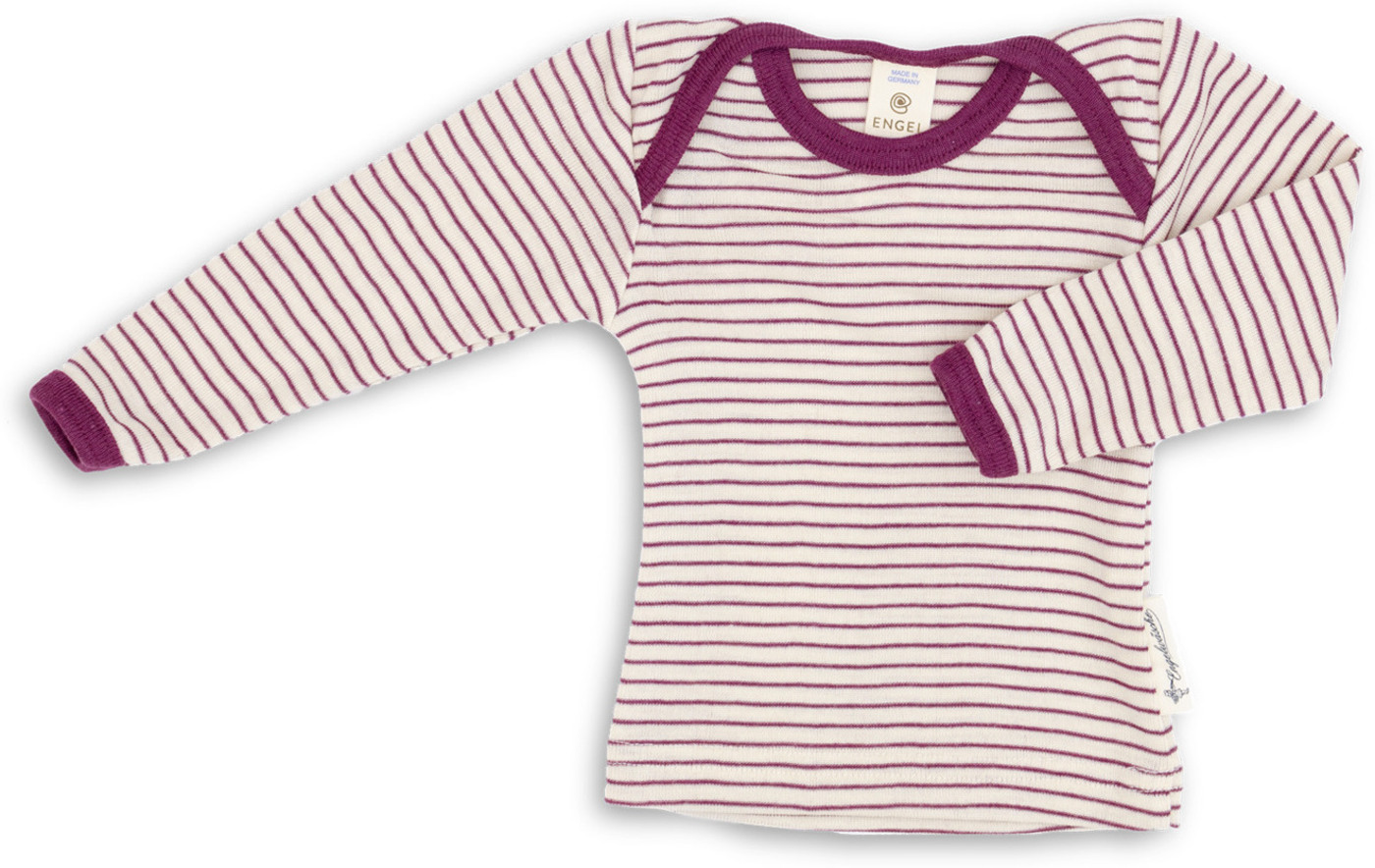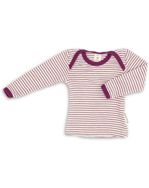Engel Baby Shirt Langarm geringelt aus Wolle/Seide GOTS - Natur/Orchidee