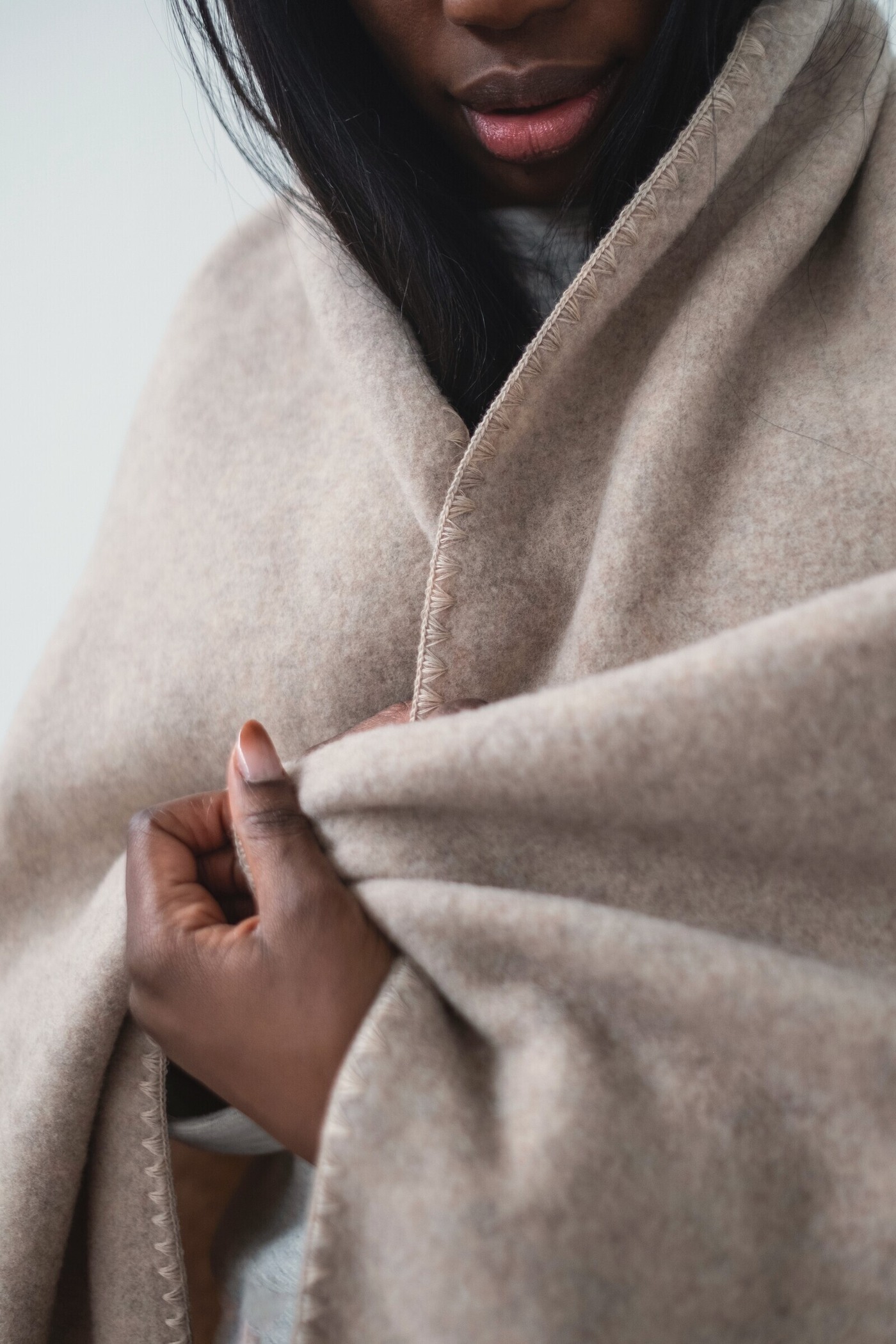 Diese kuschelweiche und flauschige Decke mit Muschelkante von Engel Natur aus hoch-qualitativer Schurwolle gefertigt.