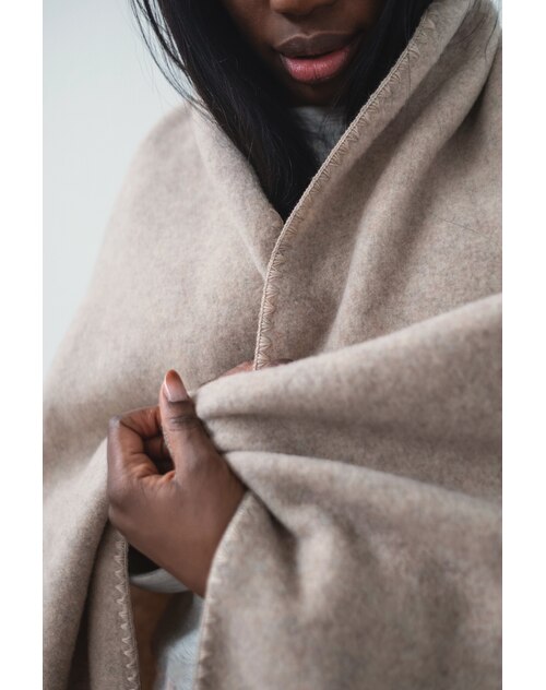 Kuschelweiche und flauschige Schurwollfleece-Decke mit Muschelkante jetzt auch für Erwachsene von ENGEL.