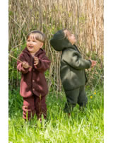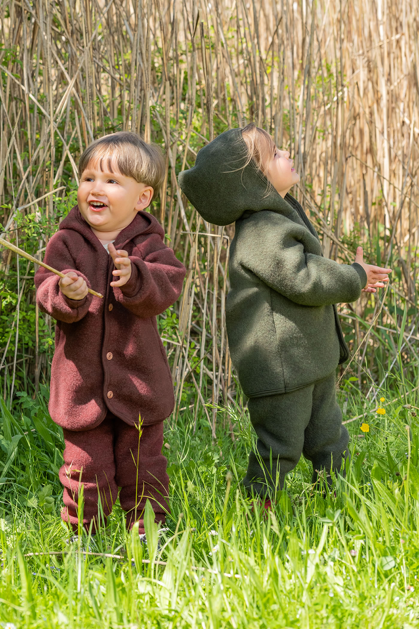 Diese Fleecejacke mit Kapuze von Engel ist aus reiner, weicher Schurwolle gefertigt und hält Kinder angenehm warm, ohne zu überhitzen.