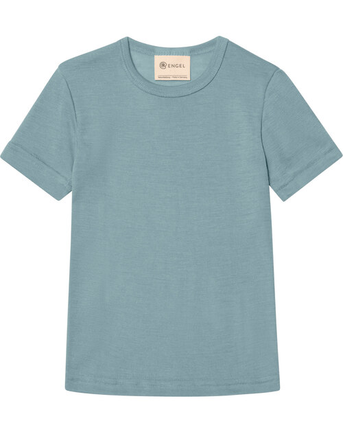 Engel Kinder-Kurzarmshirt aus Schurwolle und Seide - Bergblau