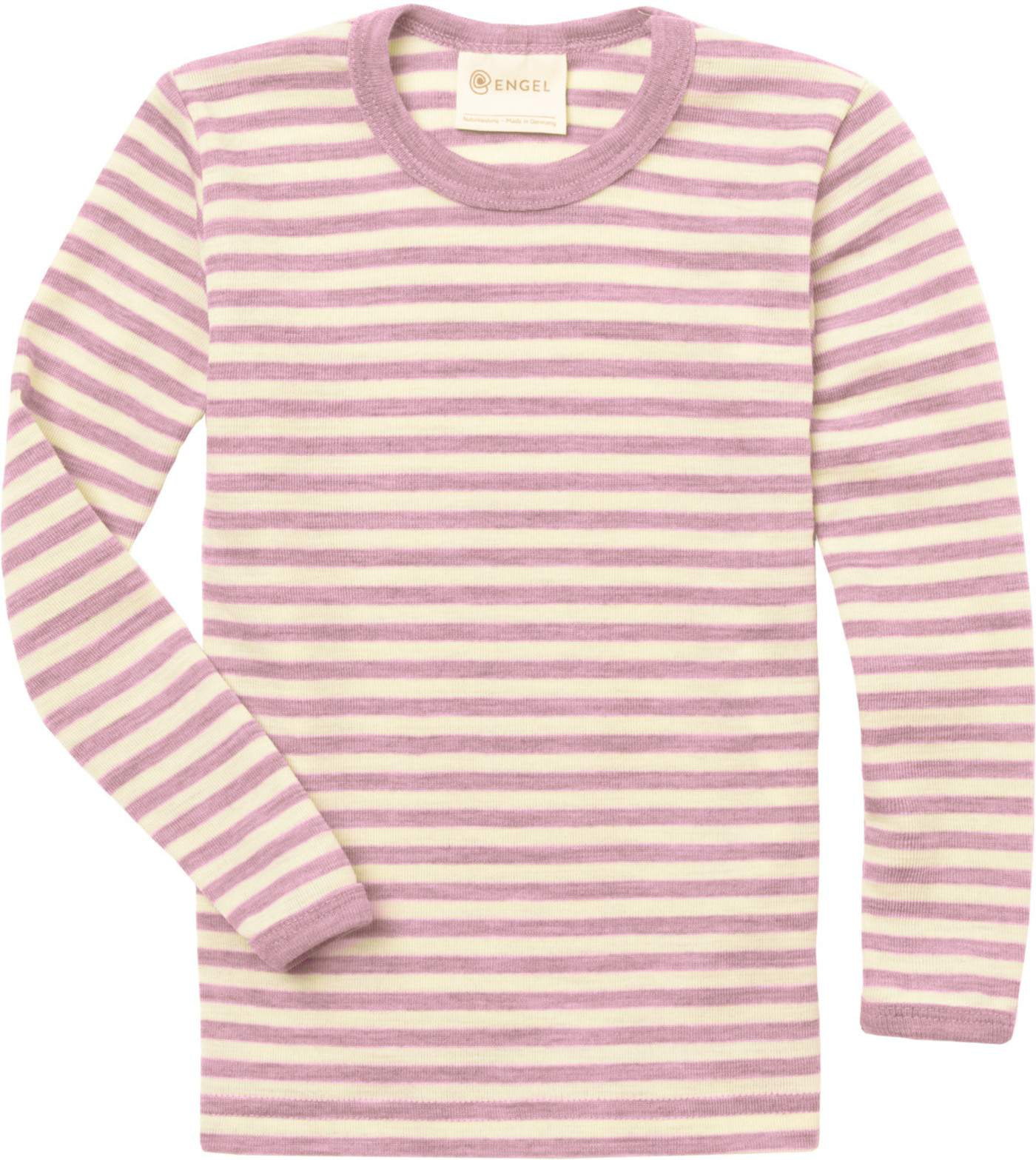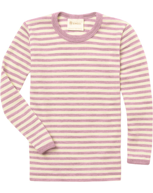Engel Kinder-Langarmshirt aus 100% Schurwolle mit Streifen - Rosenholz Melange/Natur