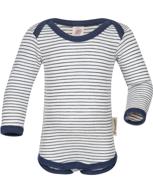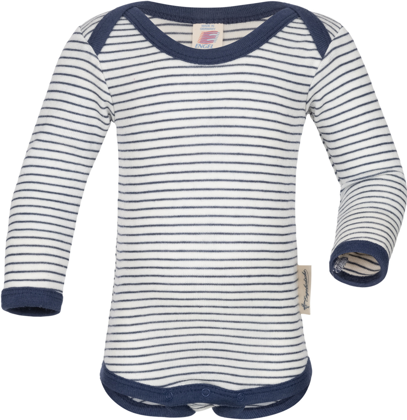 Engel Langarm-Body aus Schurwolle/Seide - Natur/Marine