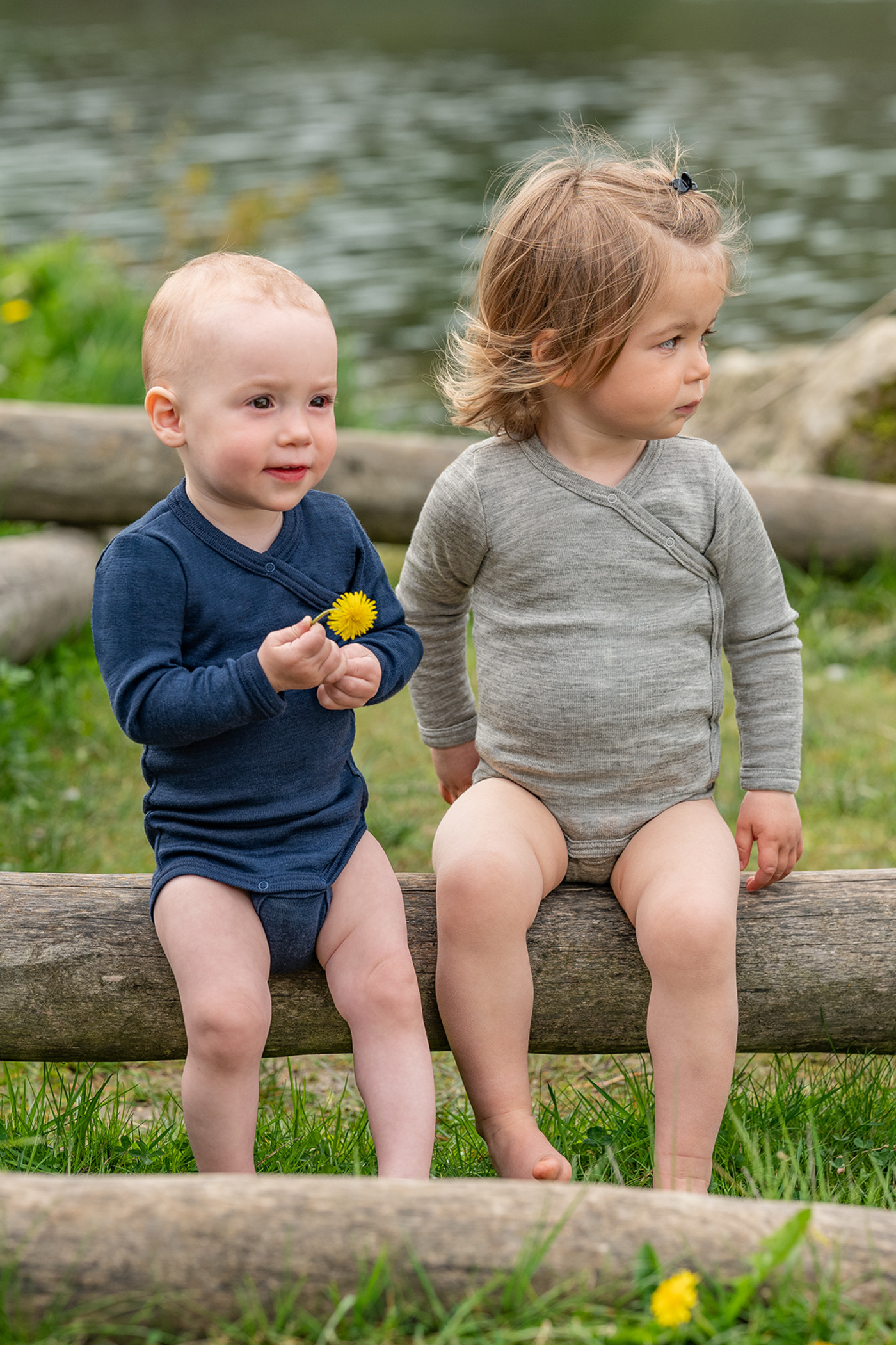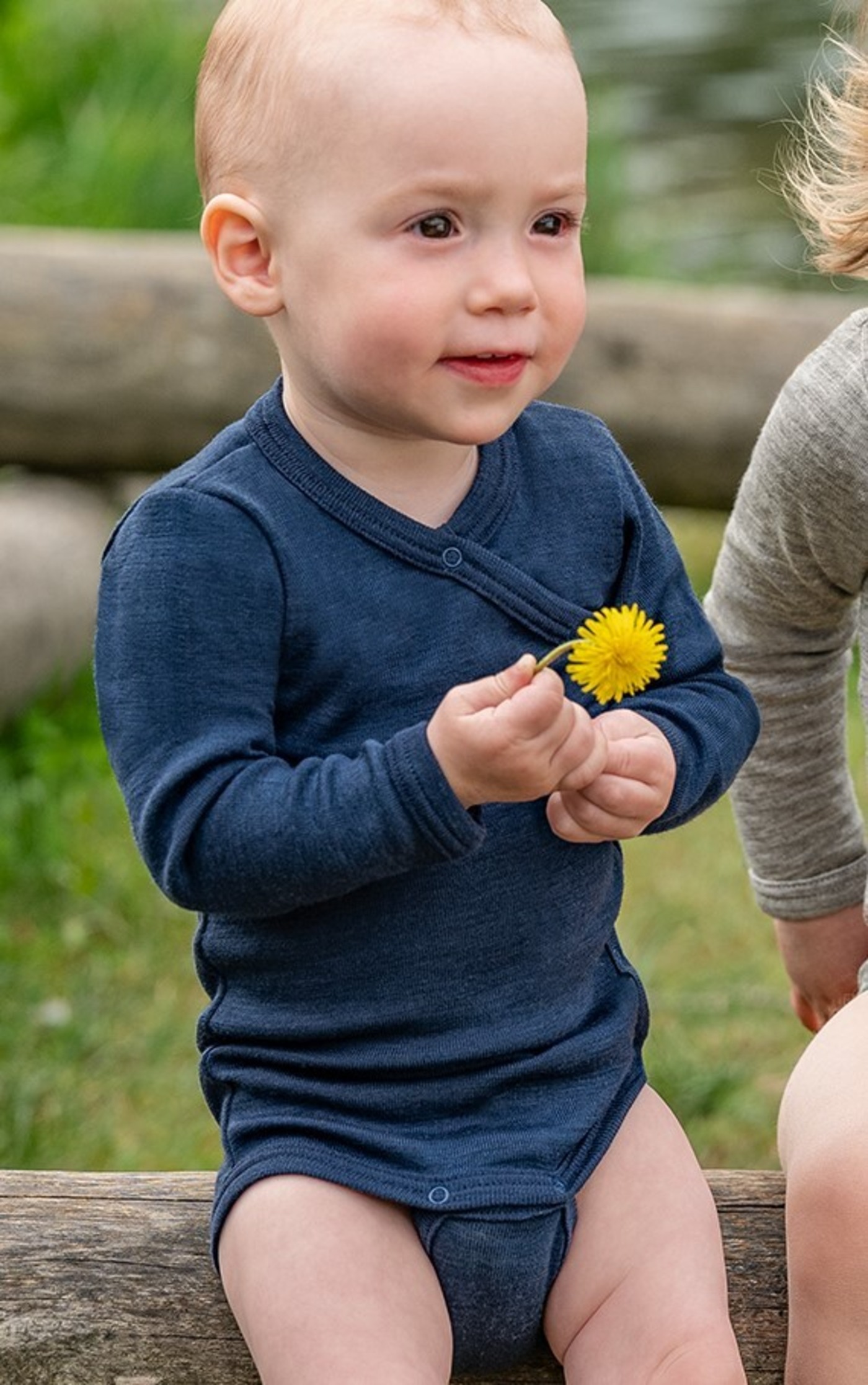 Engel Langarm-Wickel-Body aus Wolle/Seide - Marine