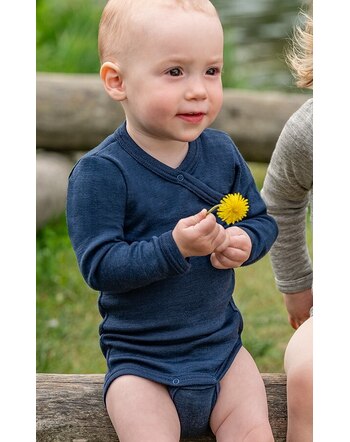 Engel Langarm-Wickel-Body aus Wolle/Seide - Marine