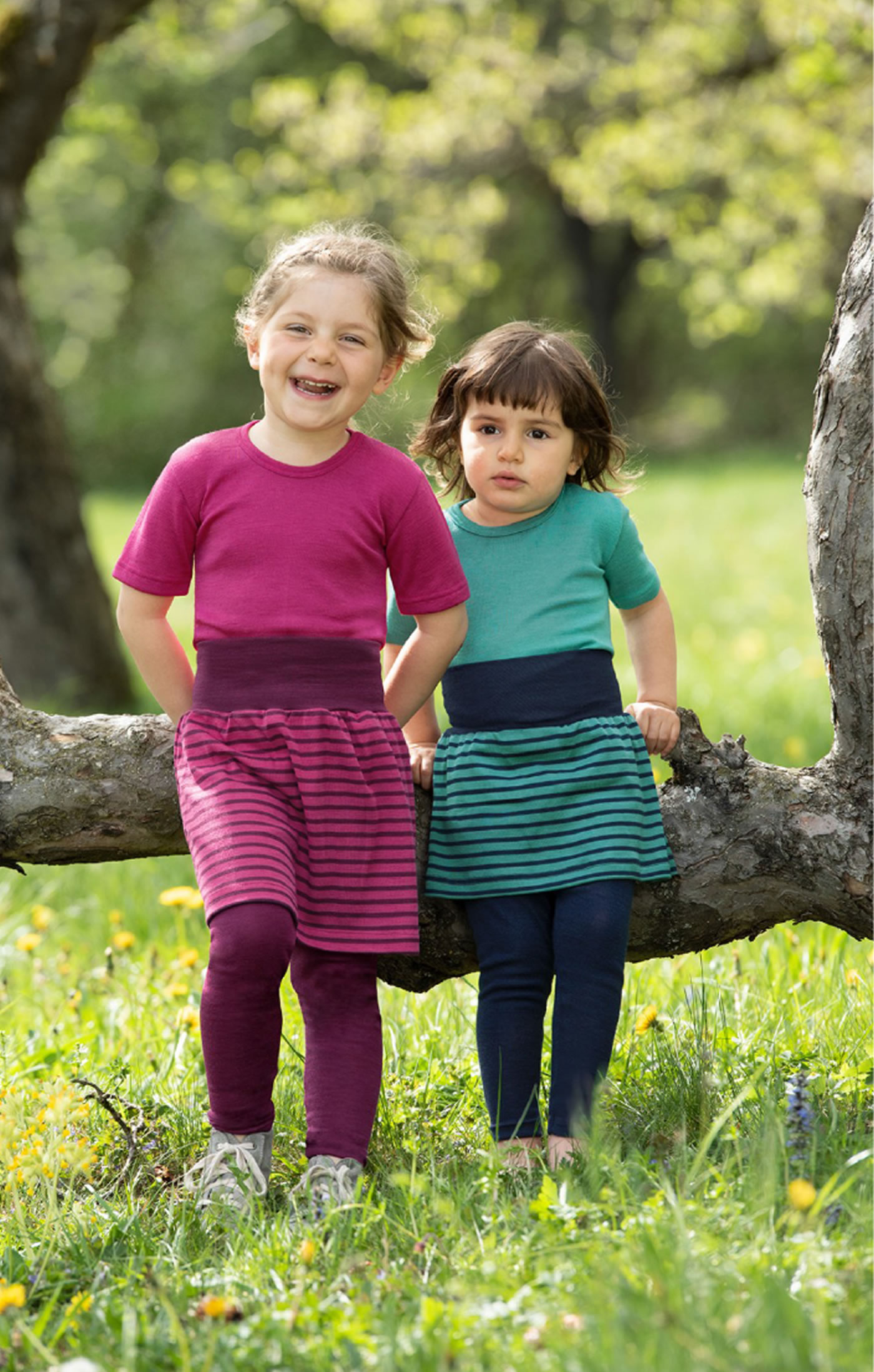 Bequemer Rock mit breitem Nabelbund von ENGEL aus Wolle/Seide. Das Material unterstützt ein gesundes Hautklima. Auf dem Kleid befinden sich aufgesetzte Taschen in Kontrastfarbe.