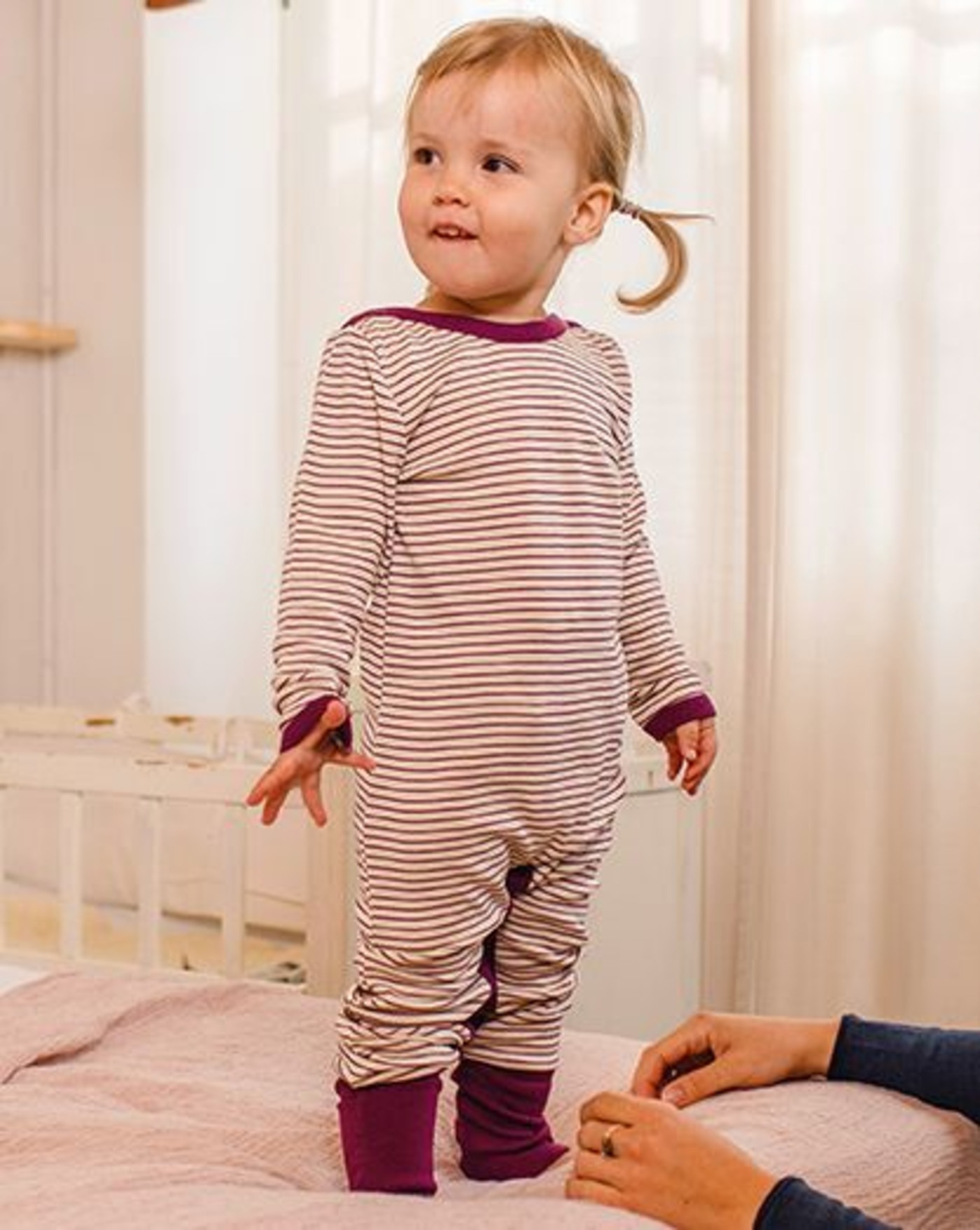 Engel Schlafoverall mit Beinumschlag aus Merinowolle/Seide - Natur/Orchidee