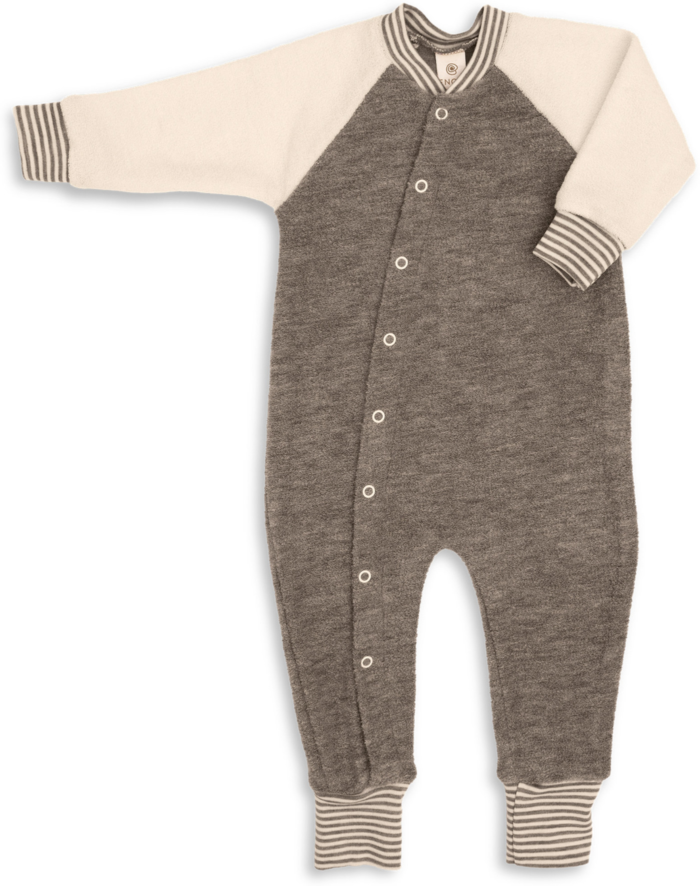 Engel Schlafoverall/Strampler aus Merinowolle mit Knopfleiste - Walnuss Melange