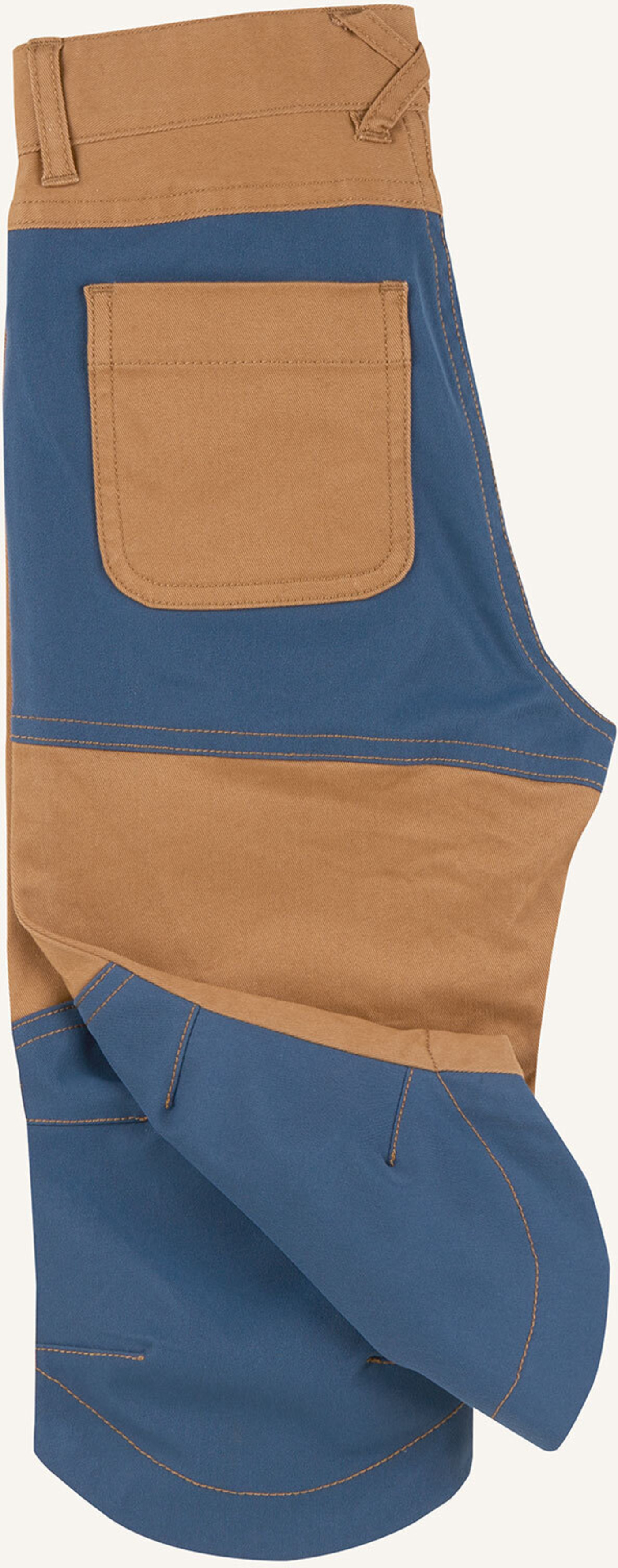Zudem verfügt die knielange Hose über einen ganz besonderen Clou: die Säume an den Beinenden können herausgelassen werden, so dass die Hose ein Stück in der Länge mitwächst.