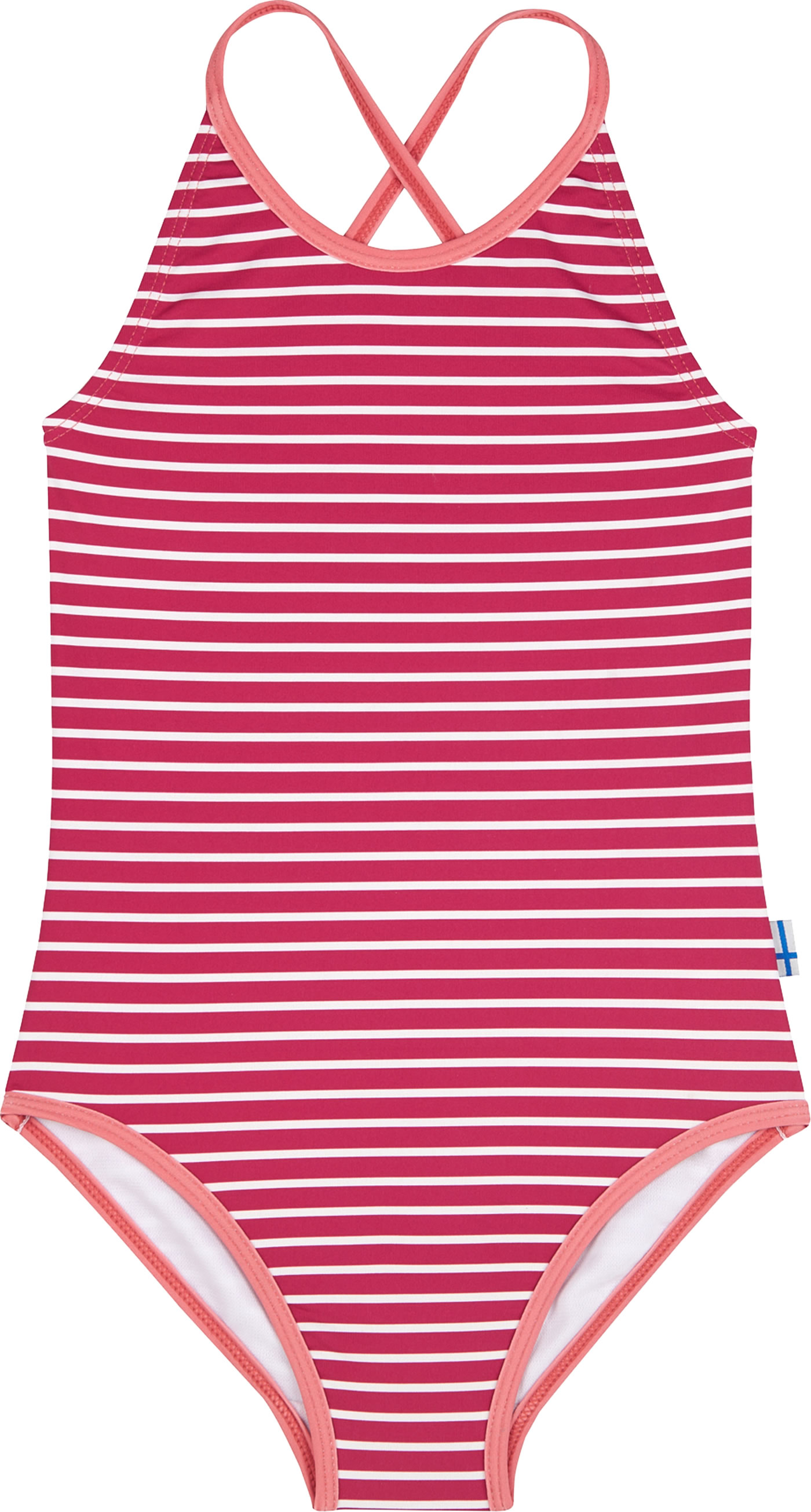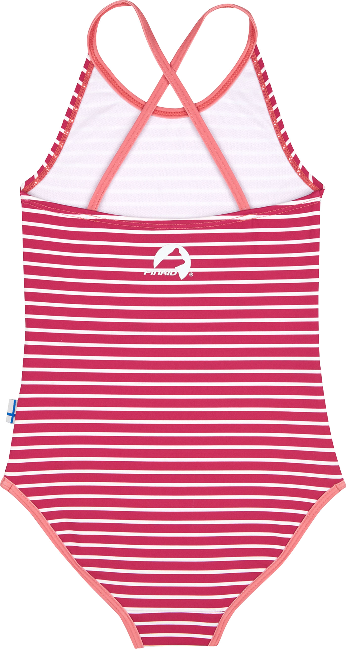 Sportlicher und schnelltrocknender Badeanzug für Mädchen von FINKID. Mit überkreuzten Trägern. Kleine Badenixen sind zusätzlich durch UV-Schutz 50+ vor der Sonne geschützt.