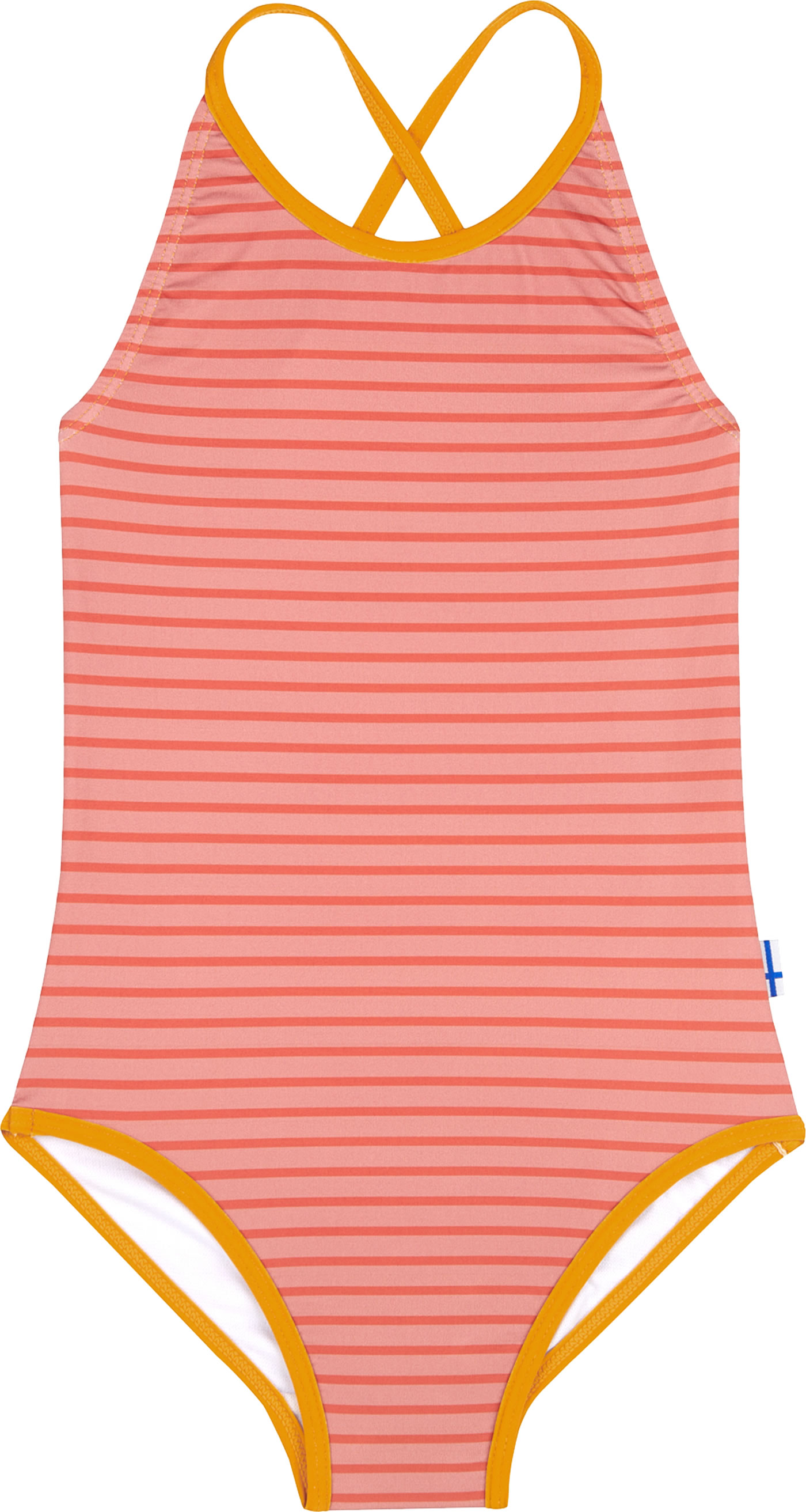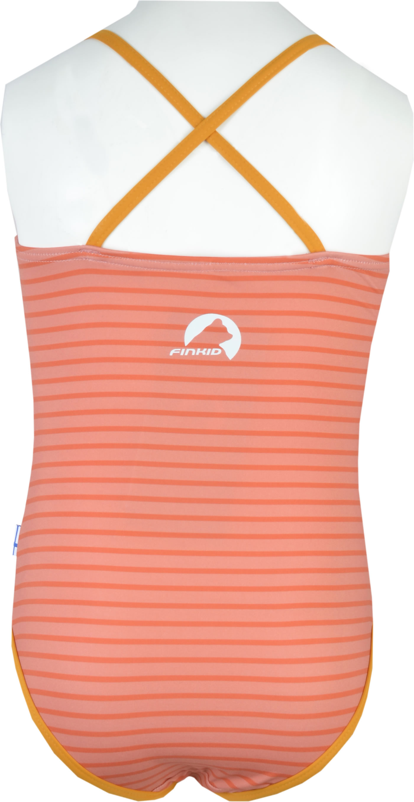 Sportlicher und schnelltrocknender Badeanzug für Mädchen von FINKID. Mit überkreuzten Trägern. Kleine Badenixen sind zusätzlich durch UV-Schutz 50+ vor der Sonne geschützt.